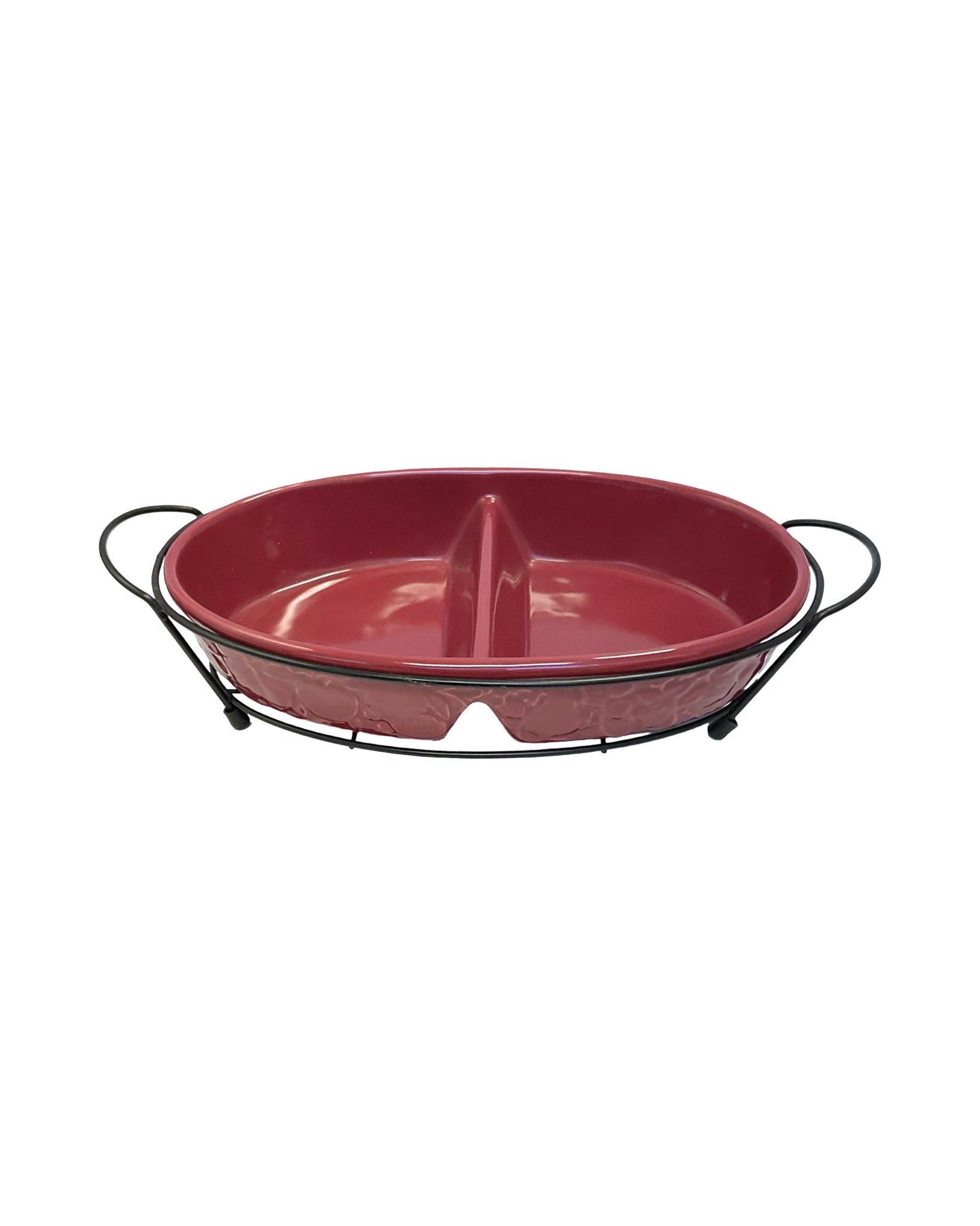 Serving Dish in 2 Handled Wire Stand Temp-tations 2 section burgundy