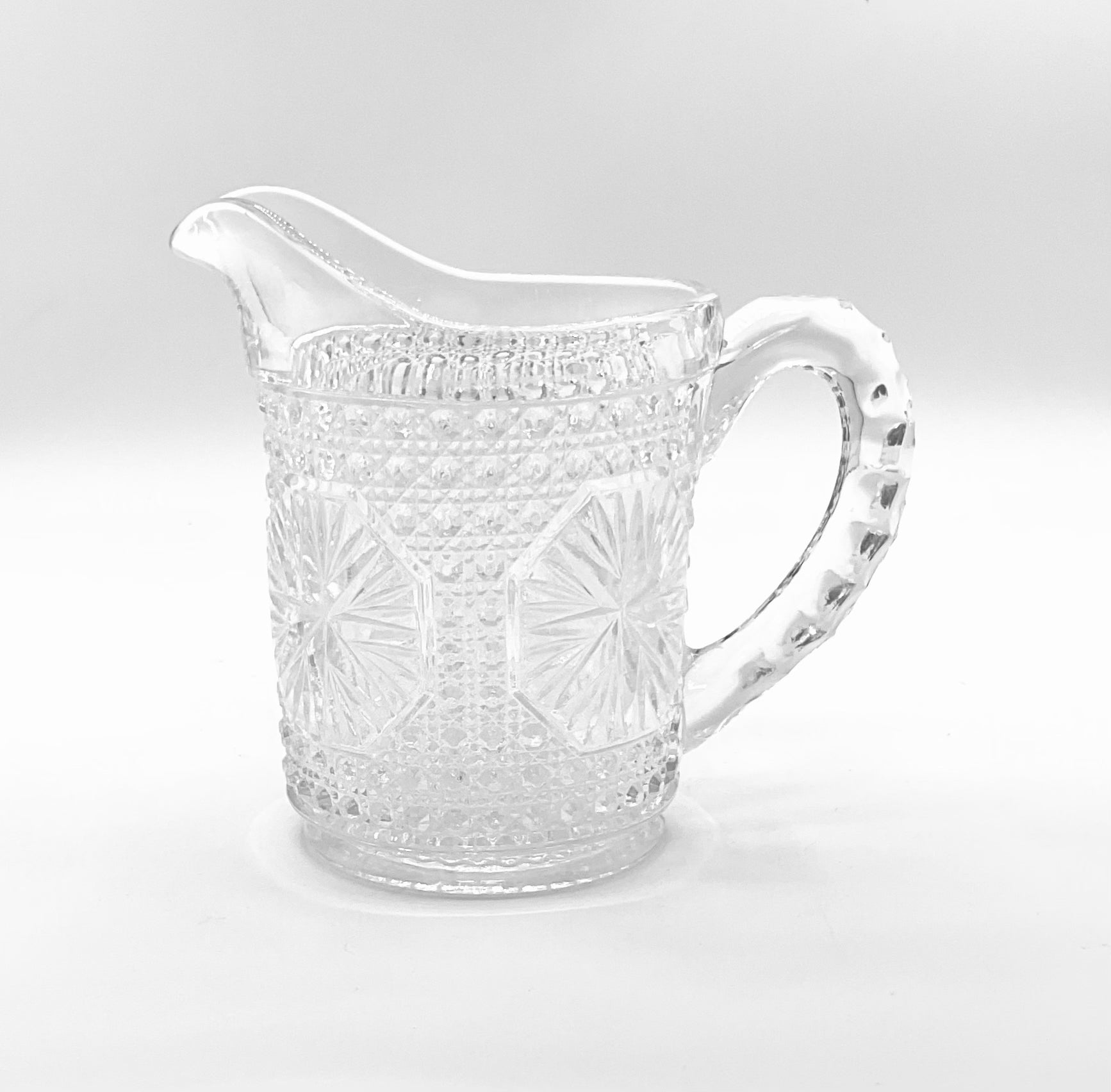 Vintage Milk Cream Pitcher with Handle pressed glass etched pattern