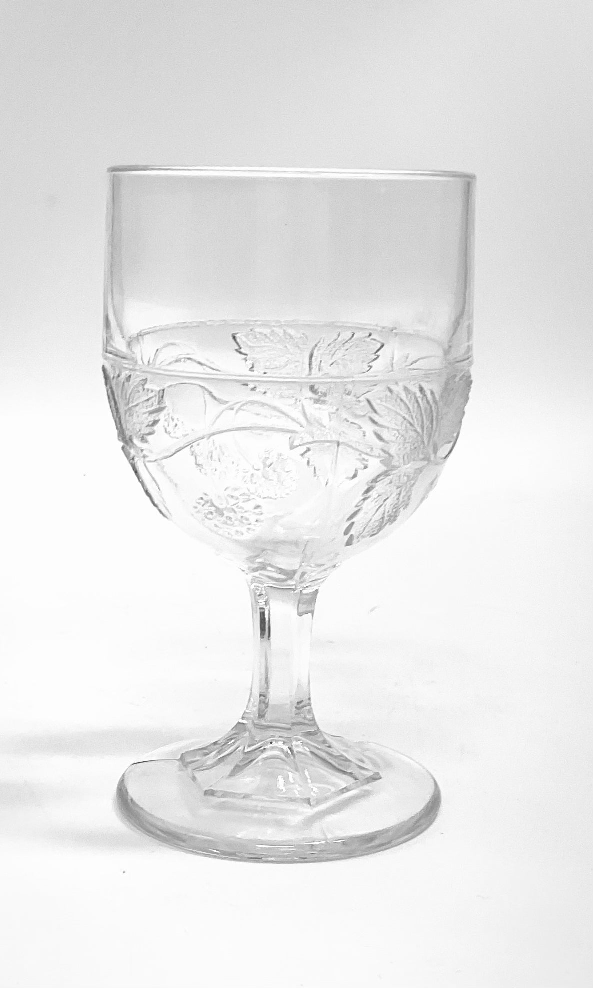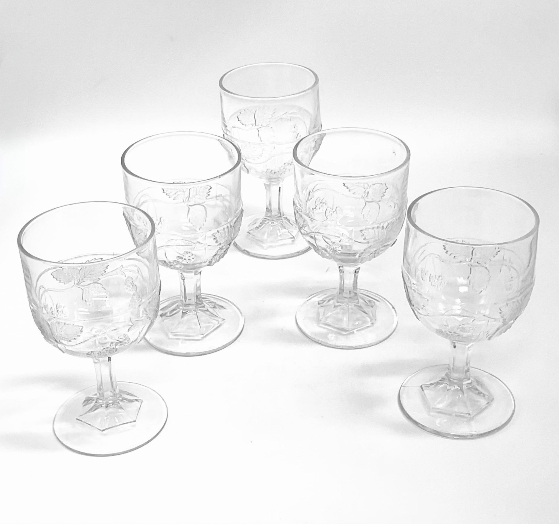 Set of 9 Vintage Stemmed Wine Glasses pressed glass with strawberry motif