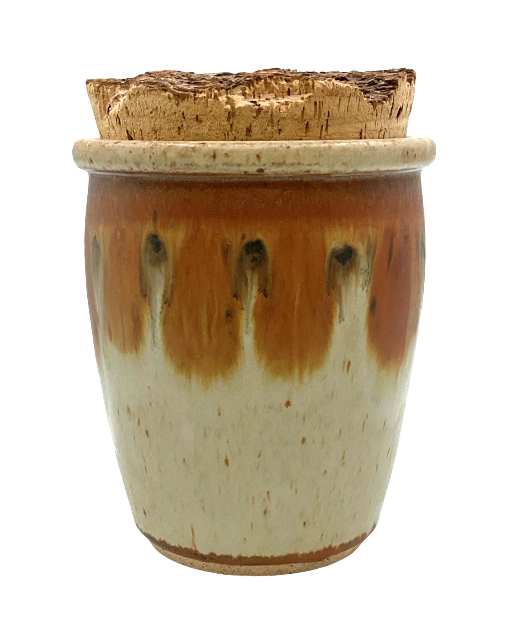Container with Cork Lid signed pottery brown & white