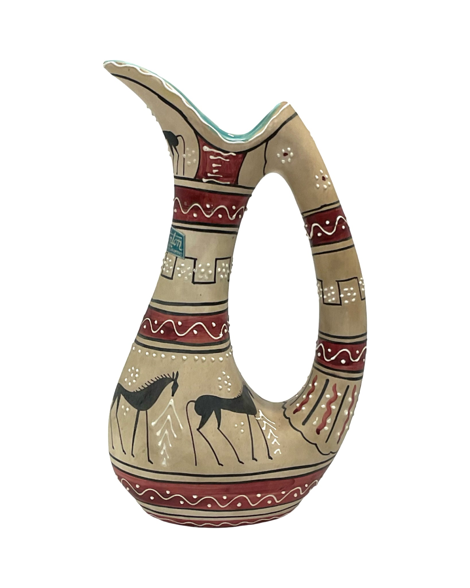 Vintage Water Pitcher with Handle Forfmenton Italy pottery brown with animal detailing