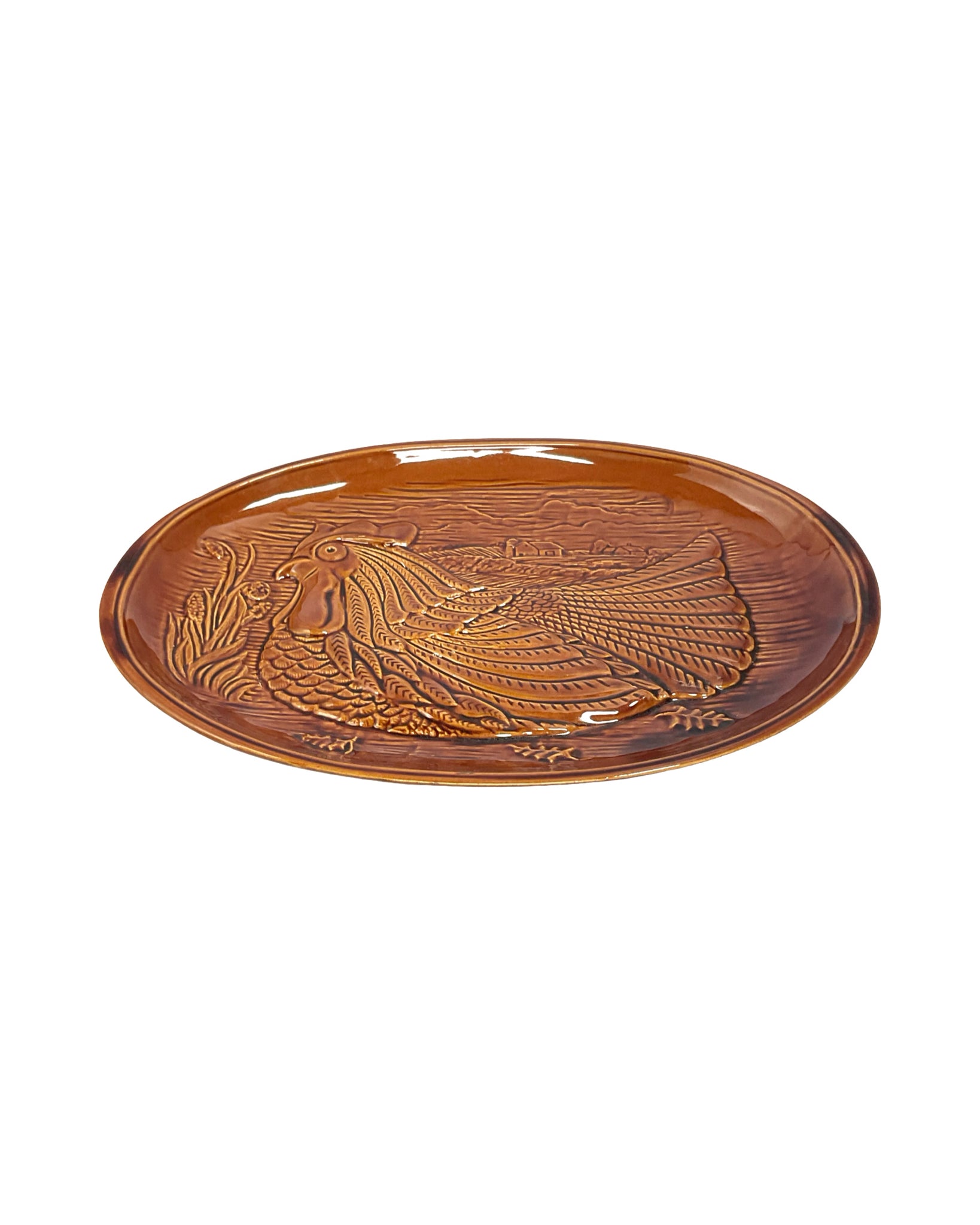 Vintage Platter McCoy oval pottery brown with chicken motif