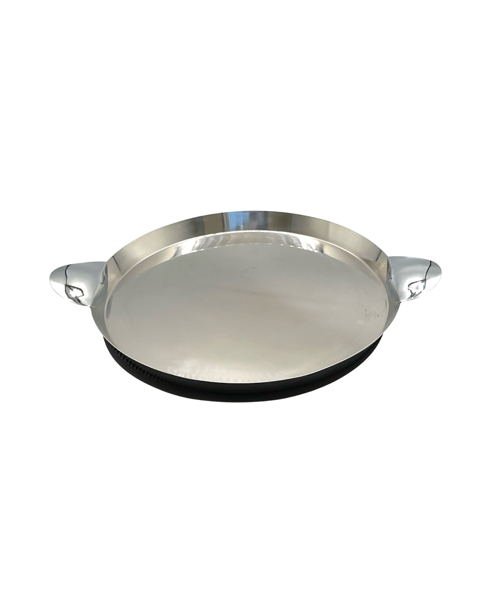 Set of 2 Trays with Silicone Inserts round 2 handles stainless steel