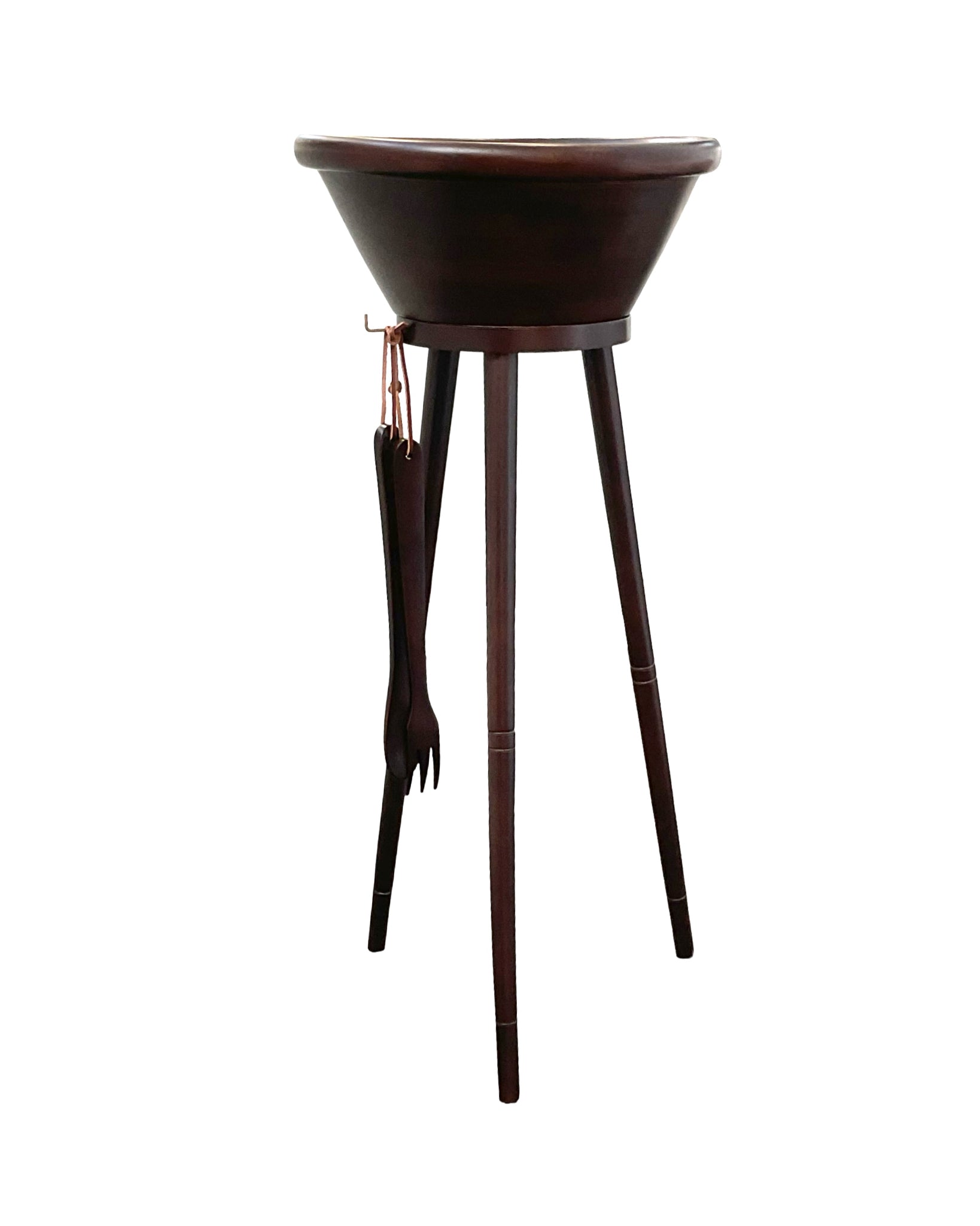 Wooden Salad Bowl on Stand with Spoon & Fork