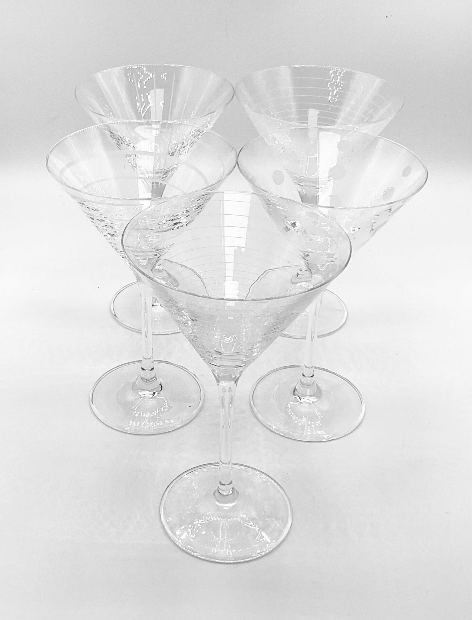 Set of 5 Martini Glasses Mikasa stemmed etched