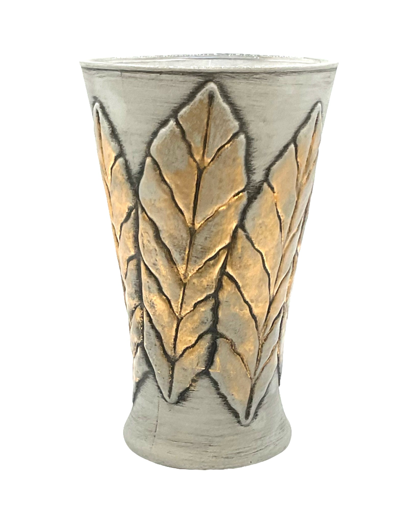 Vase Spain glass hand painted grey & gold tones with a leaf pattern