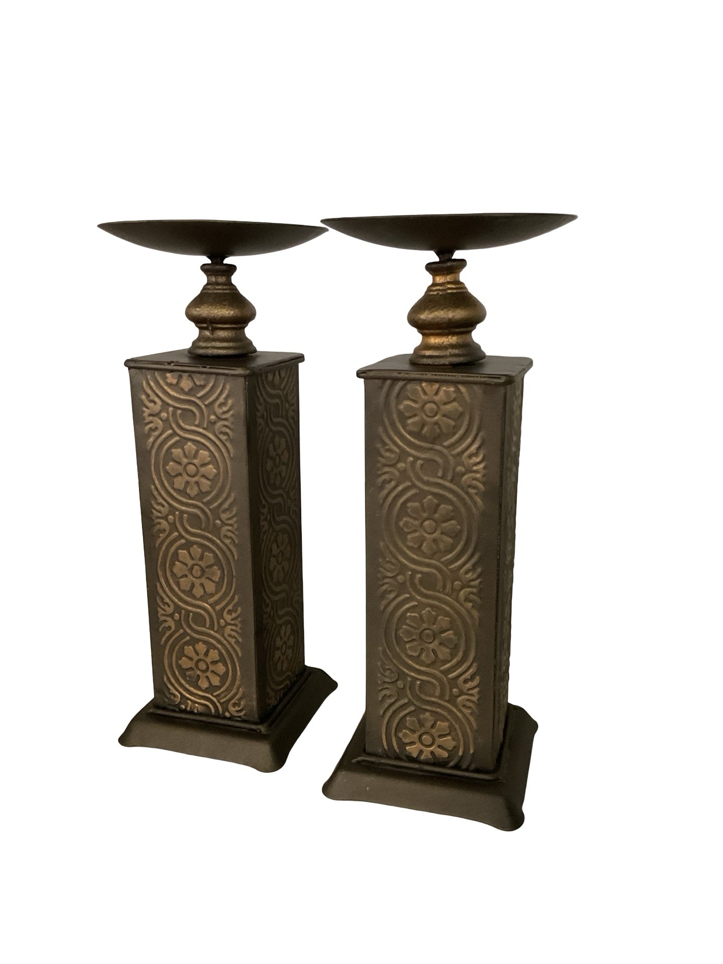 Set of 2 Candle Sticks square metal