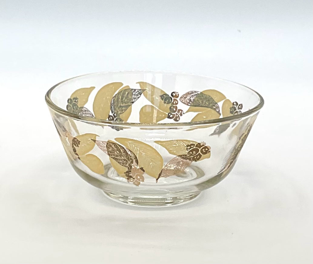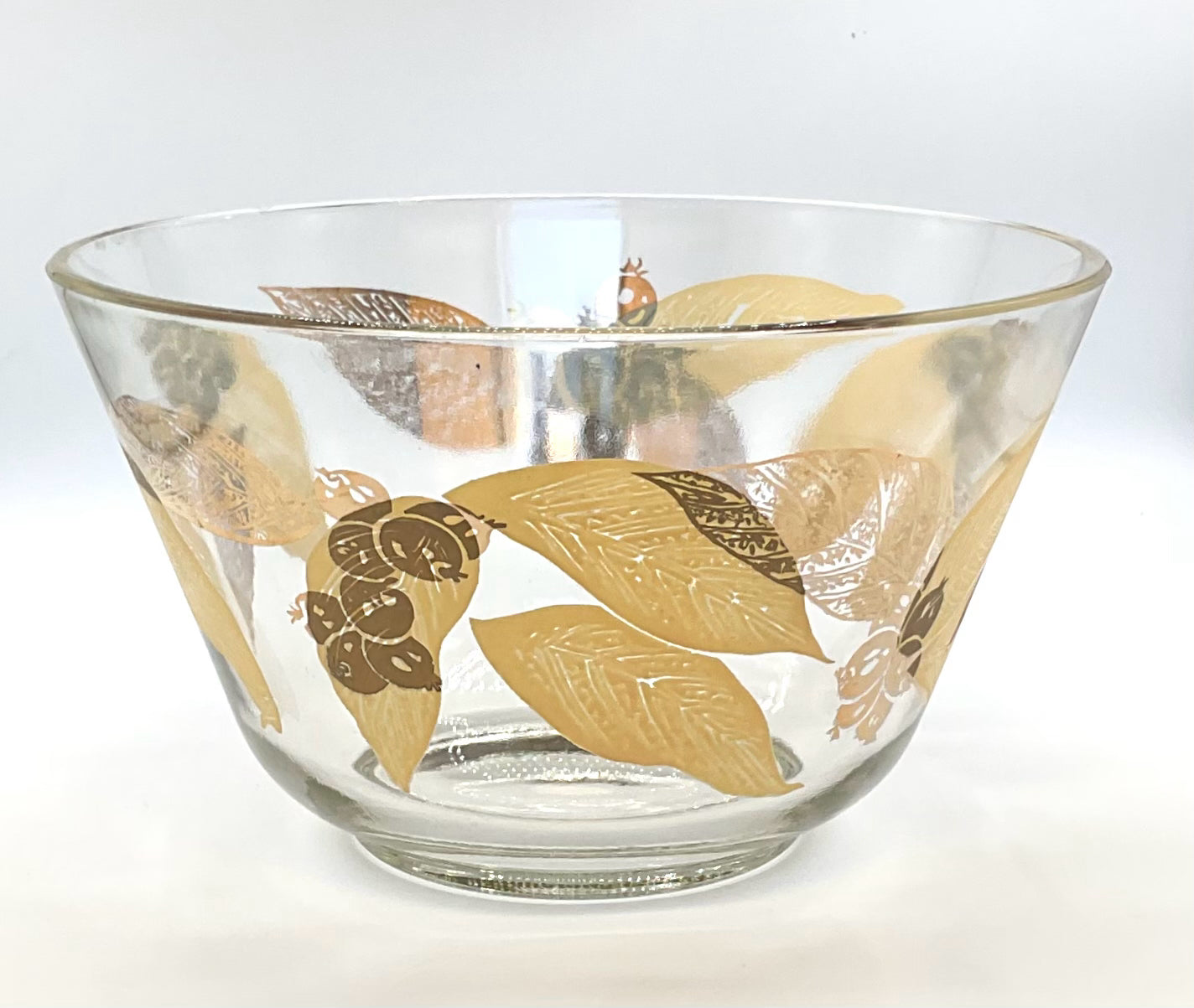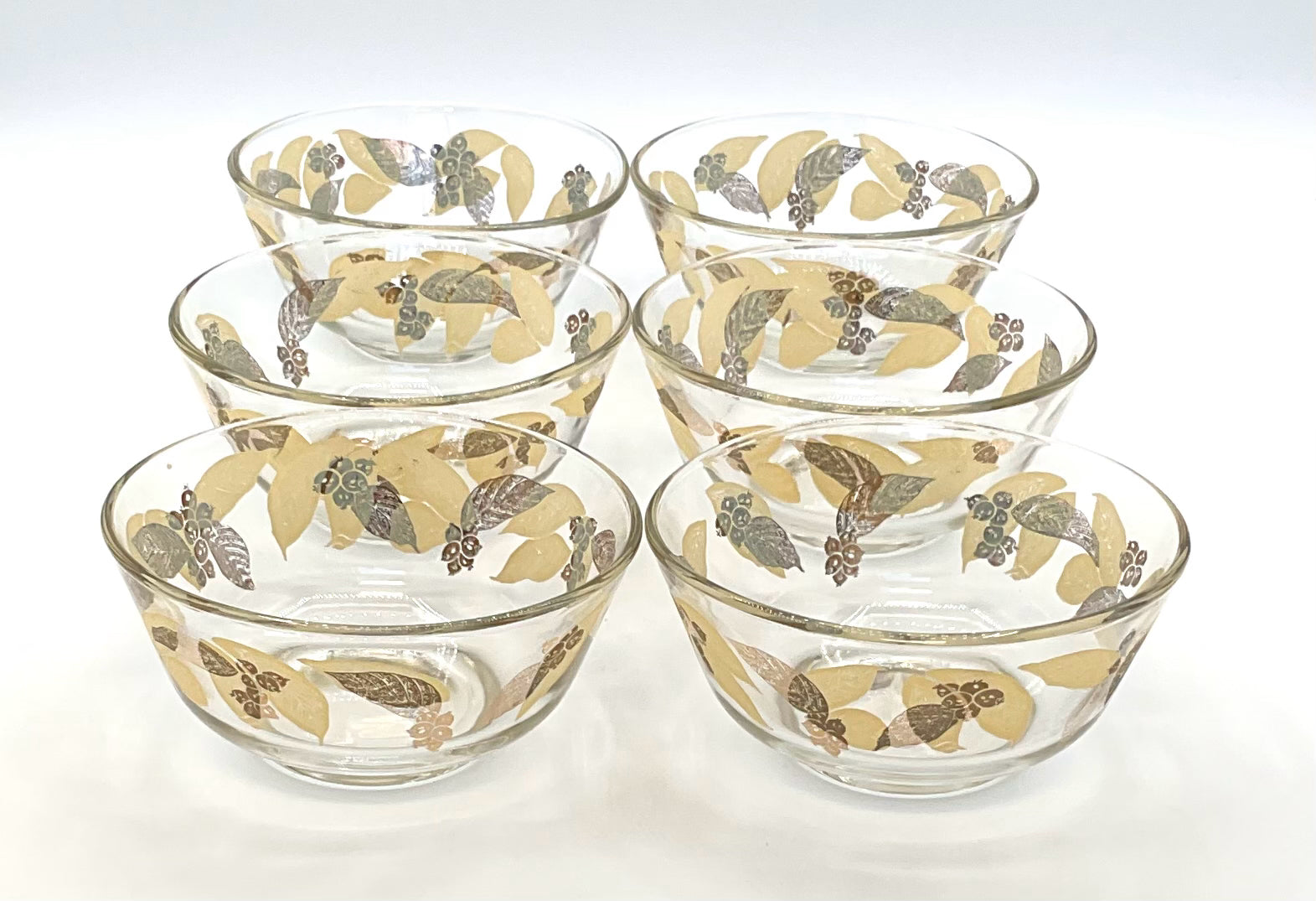 Vintage Serving Bowl with 6 Matching Individual Bowls glass with gold & cream berry pattern