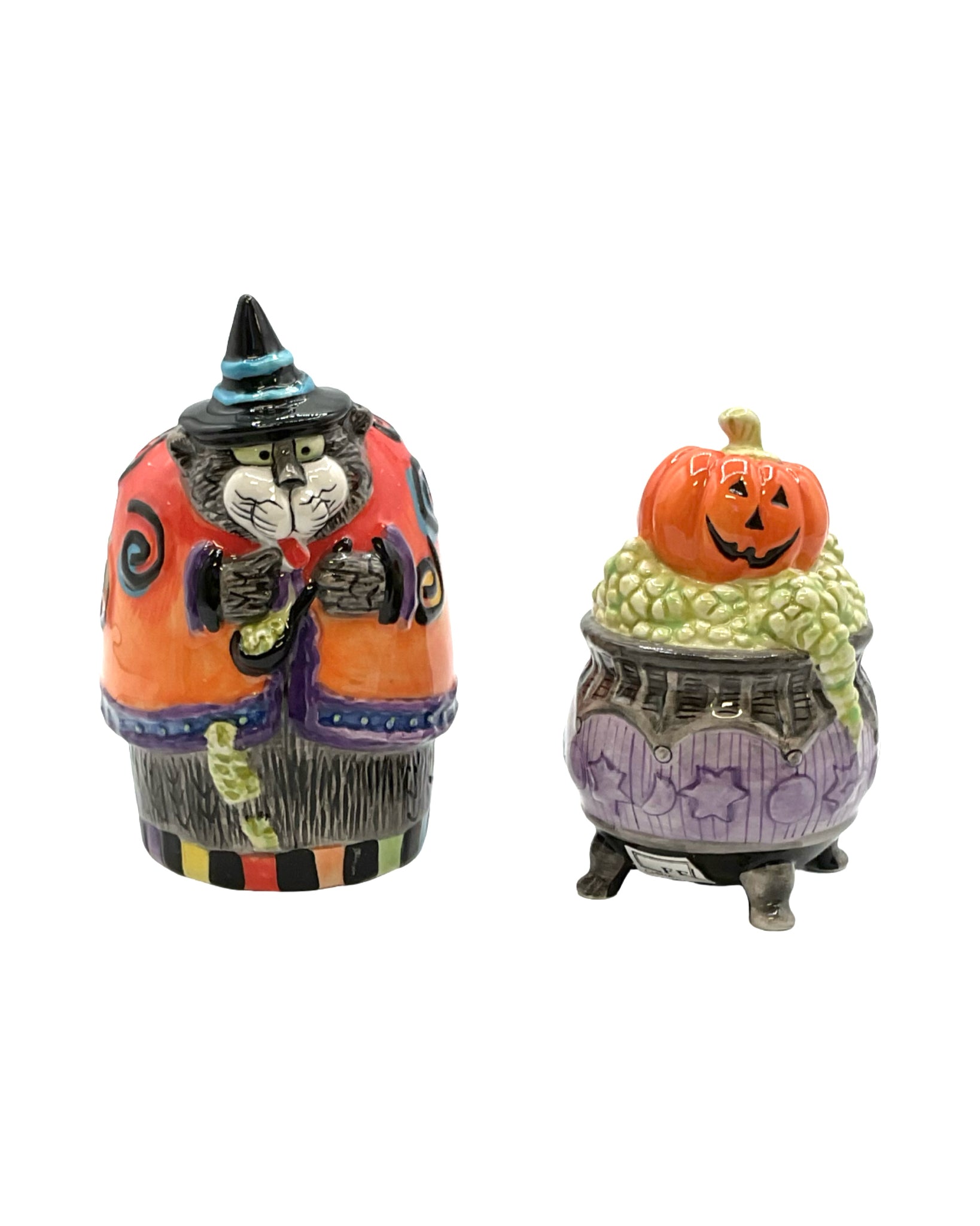 Seasonal Kitty Witches Salt & Pepper Shakers Fitz and Floyd Essentials