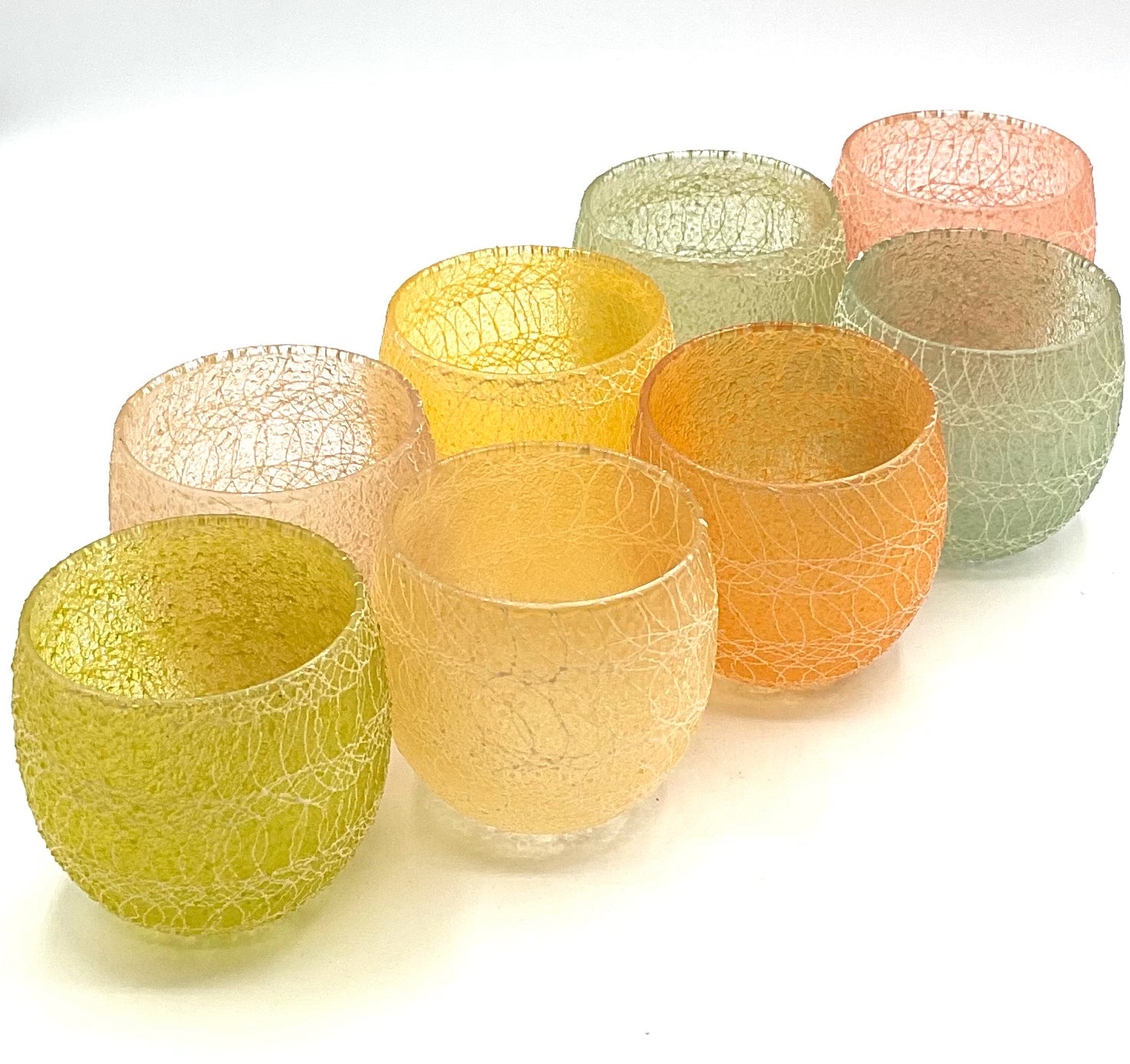 Vintage Plastisol Glass Pitcher with Handle & 8 Glasses multi coloured