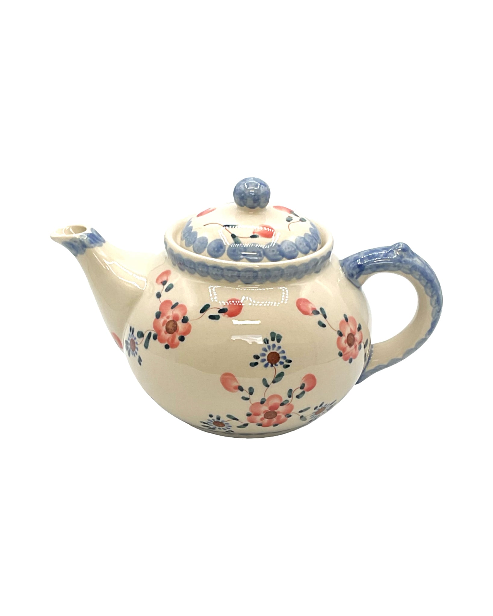 Tea Pot with Lid Boleslawiecka pottery off white with multi coloured floral detailing