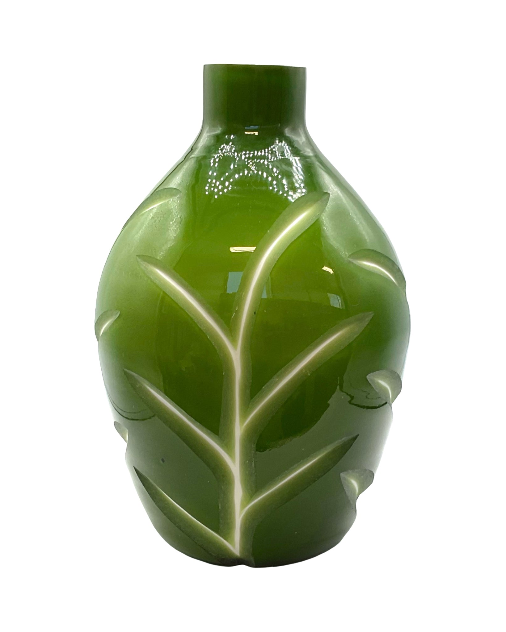 Large Vase art glass green cut to white