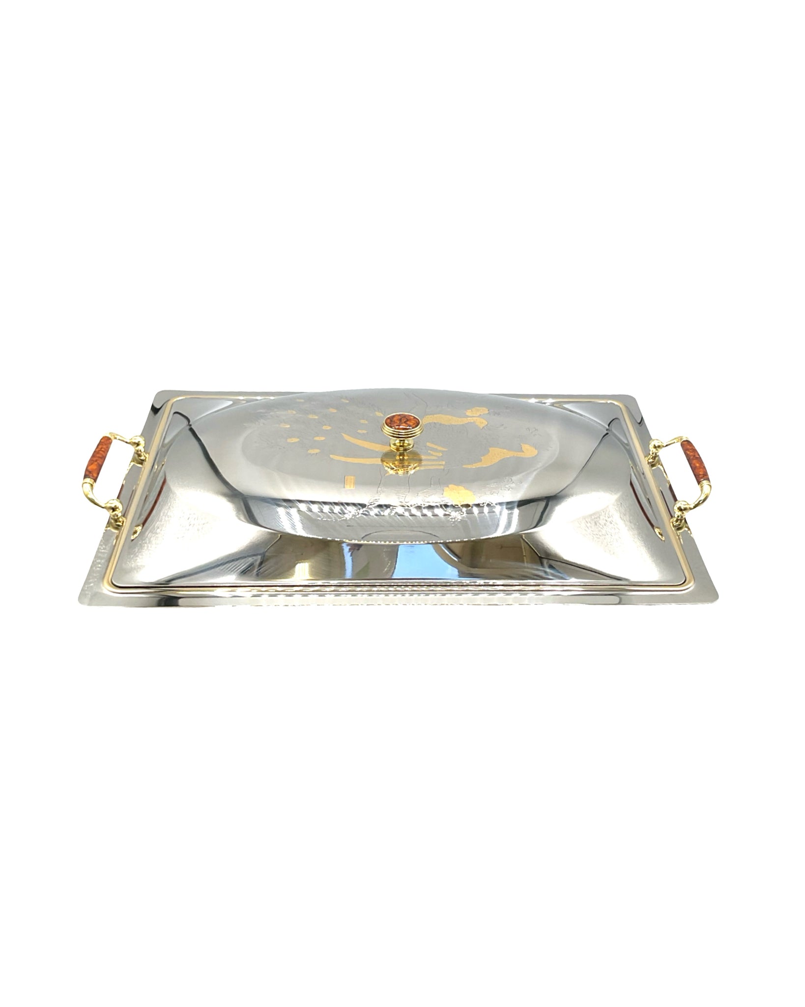 Serving Platter with 2 Handles & Lid Italy rectangle stainless steel with peacock detailing