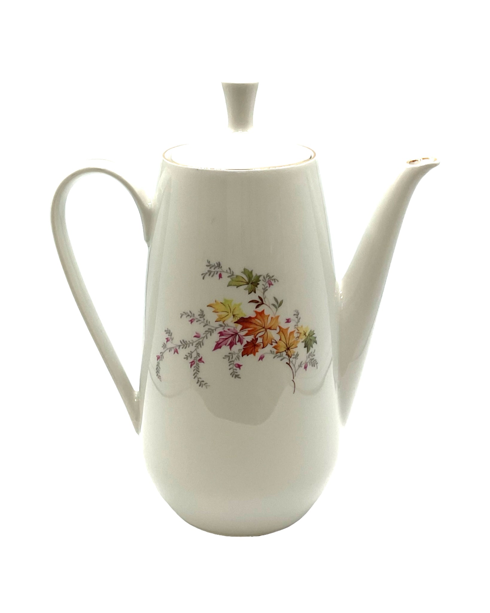 Vintage Tea Coffee Pot with Lid Colditz Germany white with fall motif and gold detailing