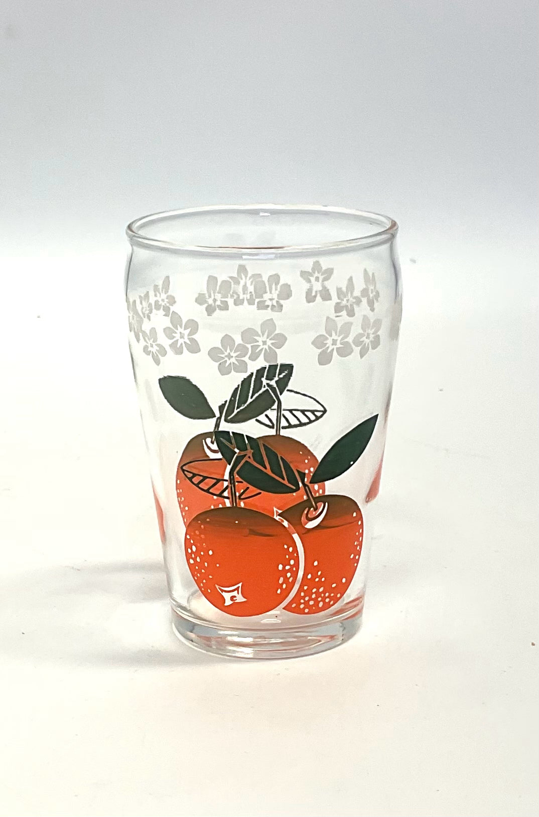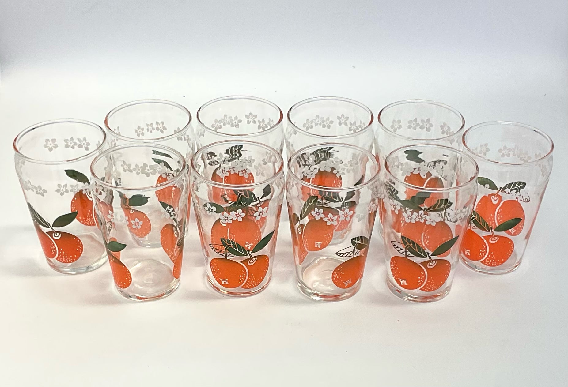 Set of 10 Vintage Juice Glasses clear with orange motif