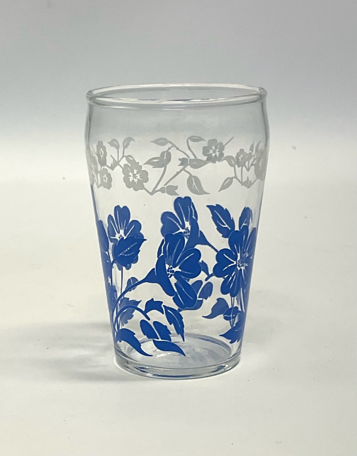 Set of 11 Vintage Juice Glasses clear with blue & white floral motif