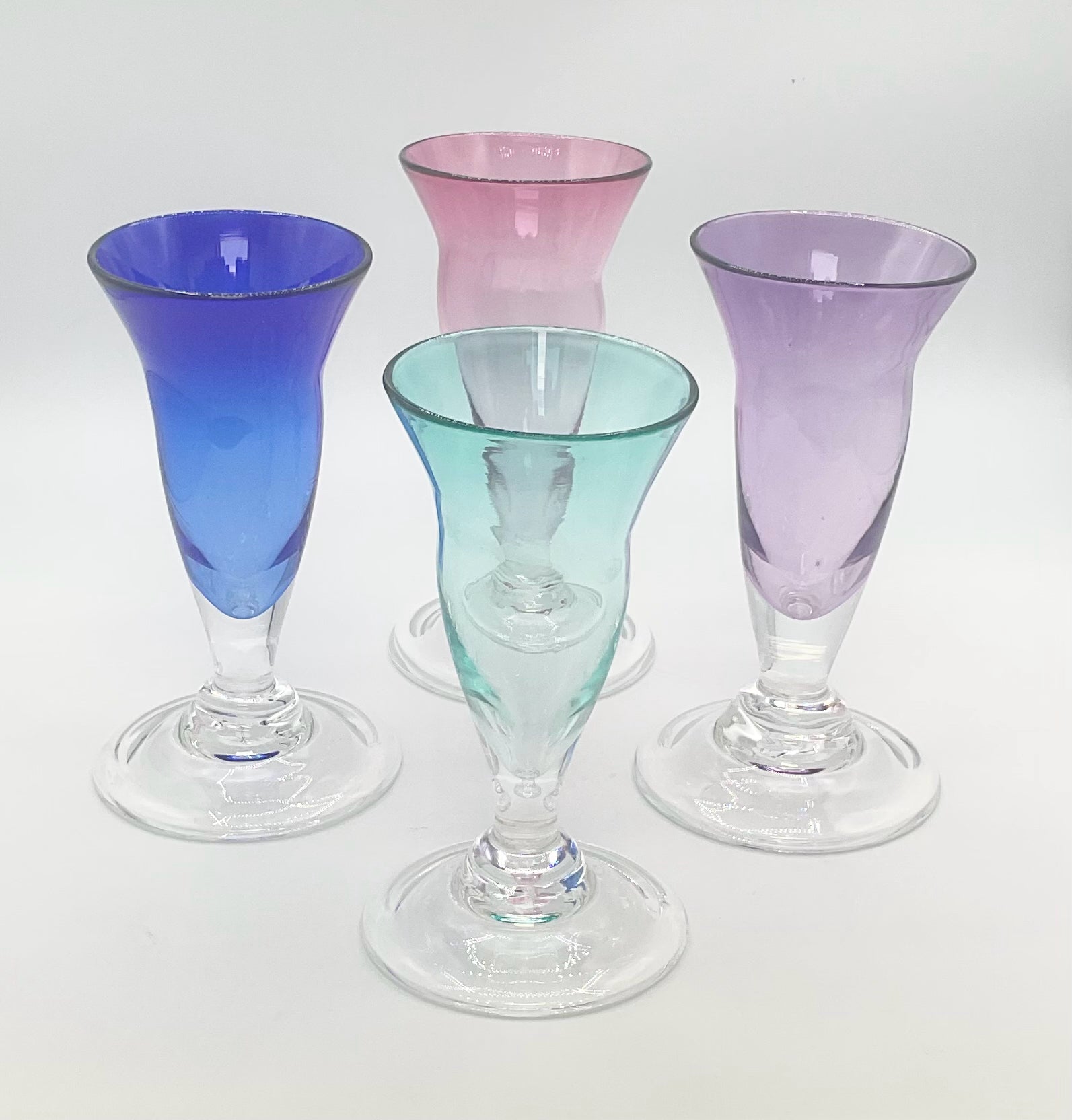 Set of 4 Vintage Wine Glasses Simon Bisley art glass hand blown purple blue turquoise pink