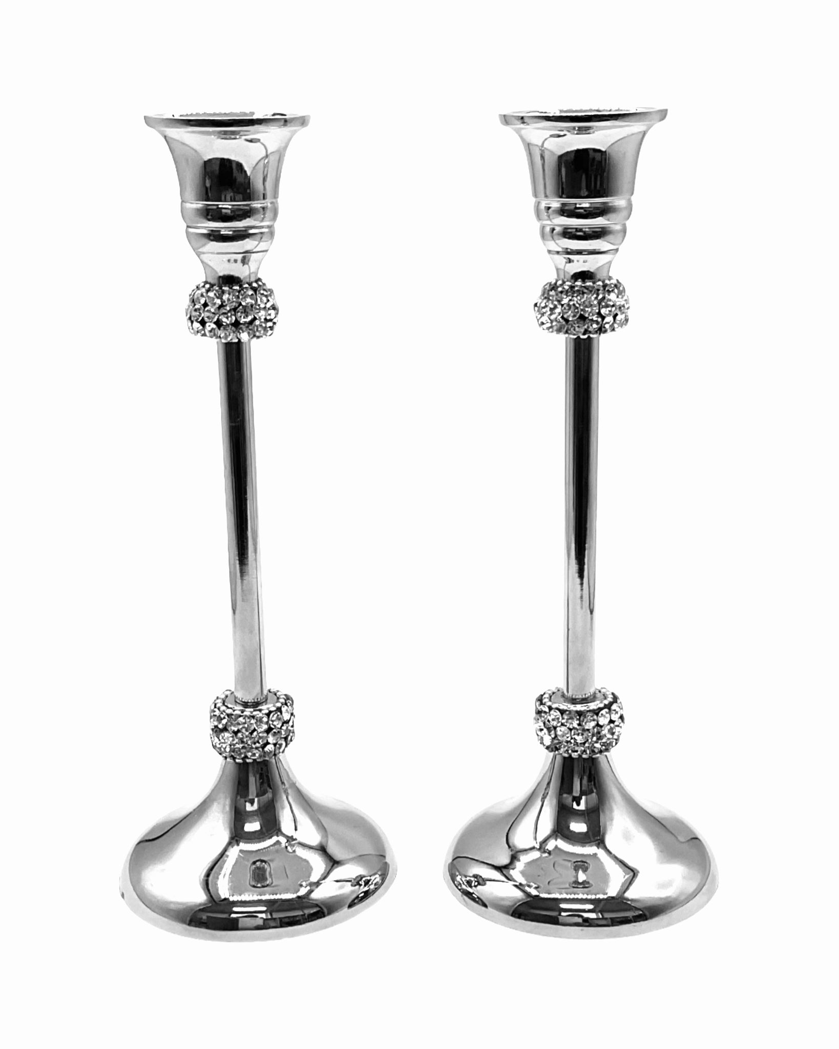 Set of 2 Candle Sticks silver plate with crystal detailing
