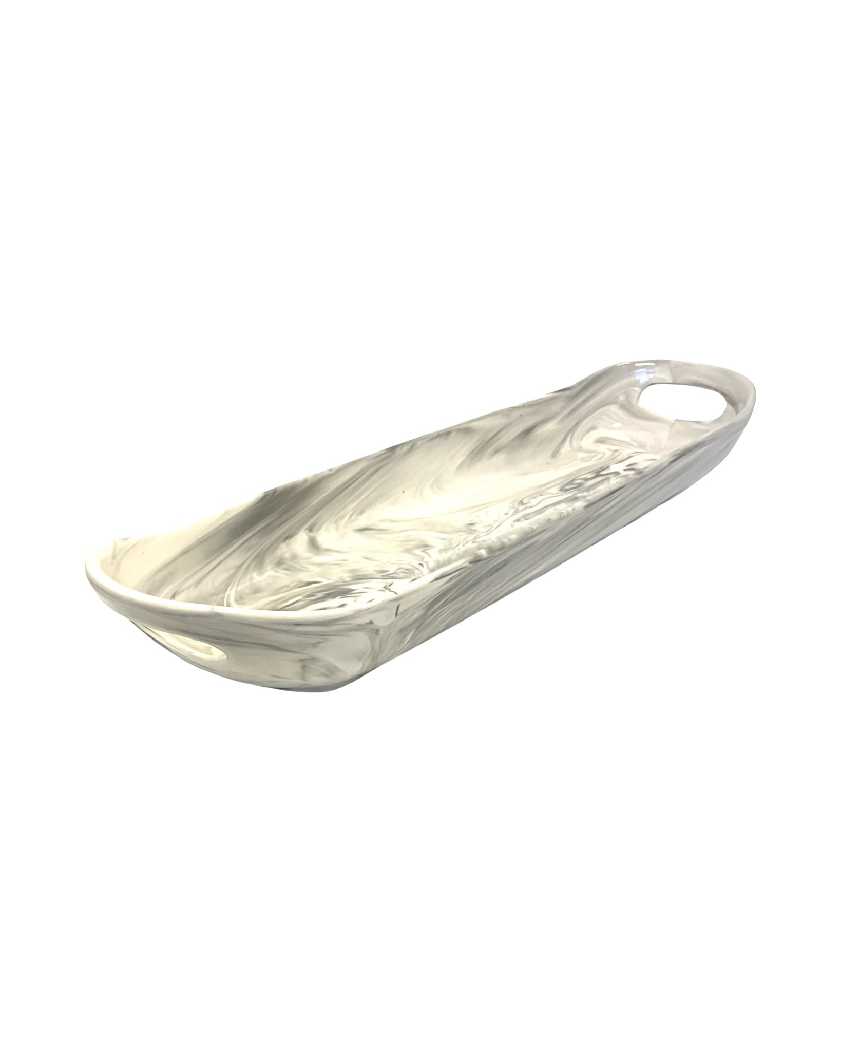 Serving Dish with 2 Handles Grace's Pantry ceramic white & grey swirl pattern