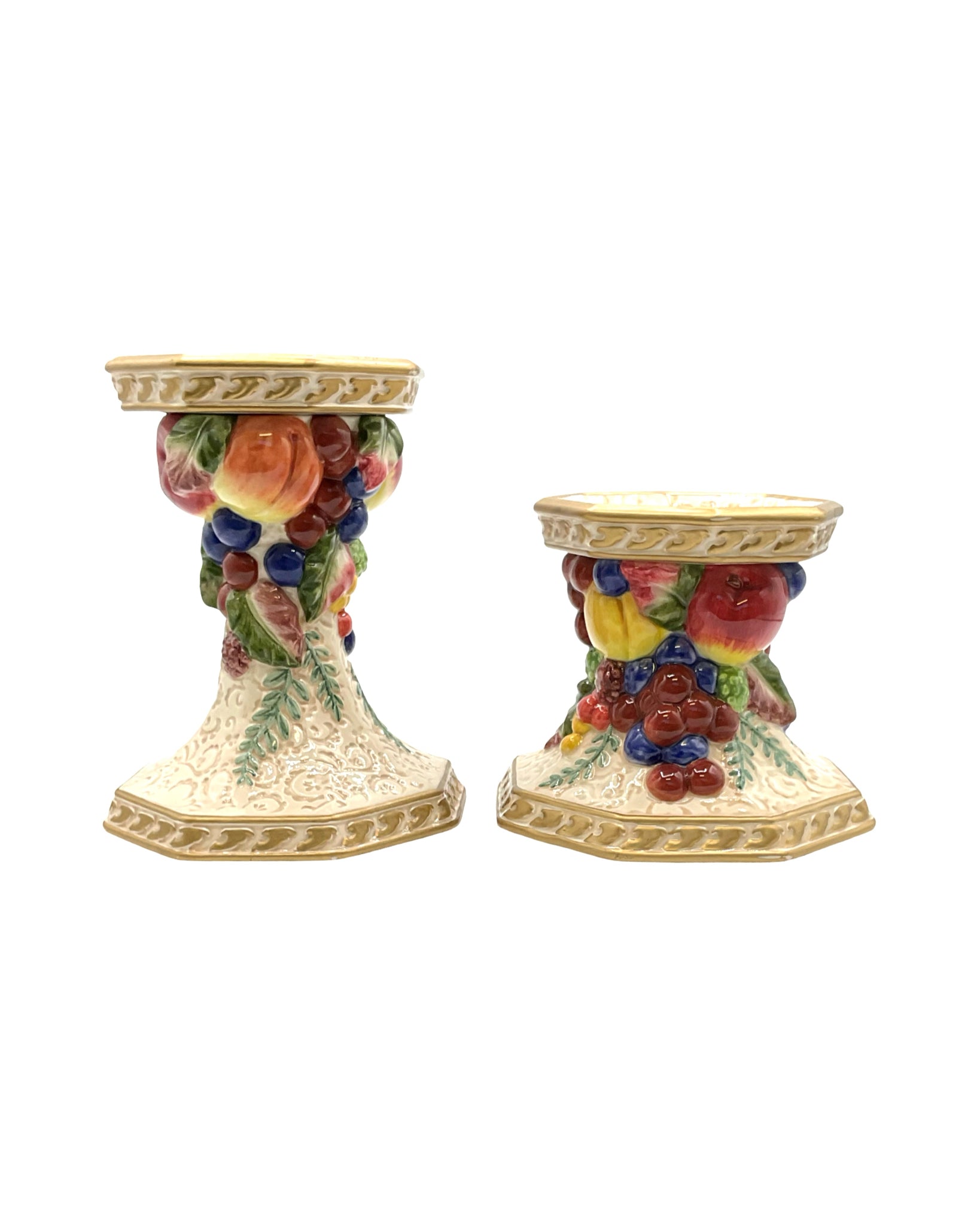 Seasonal Set of 2 Pillar Candle Holders Fitz and Floyd Classics