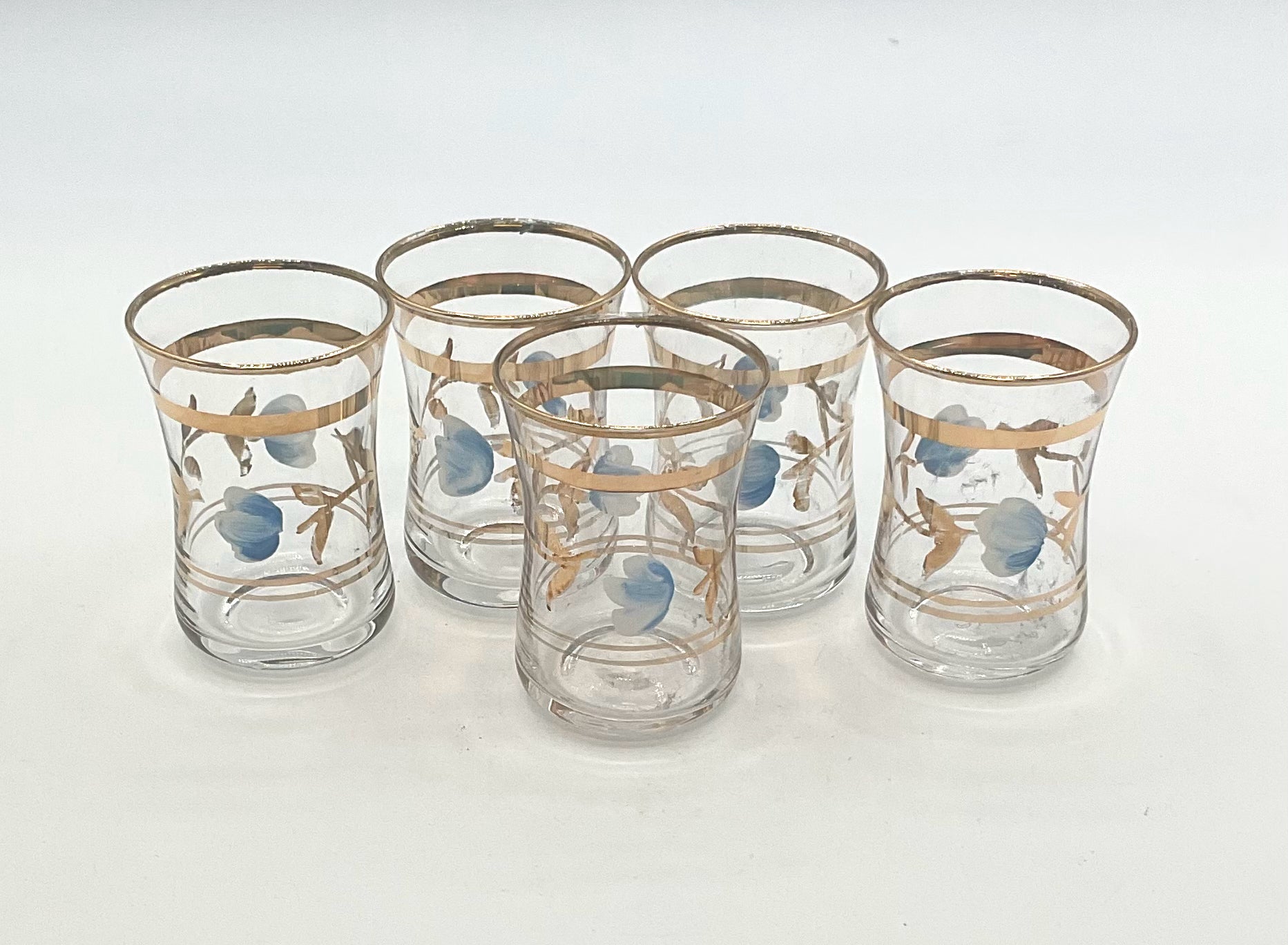 Set of 5 Shot Glasses gold detailing with floral hand painted flowers