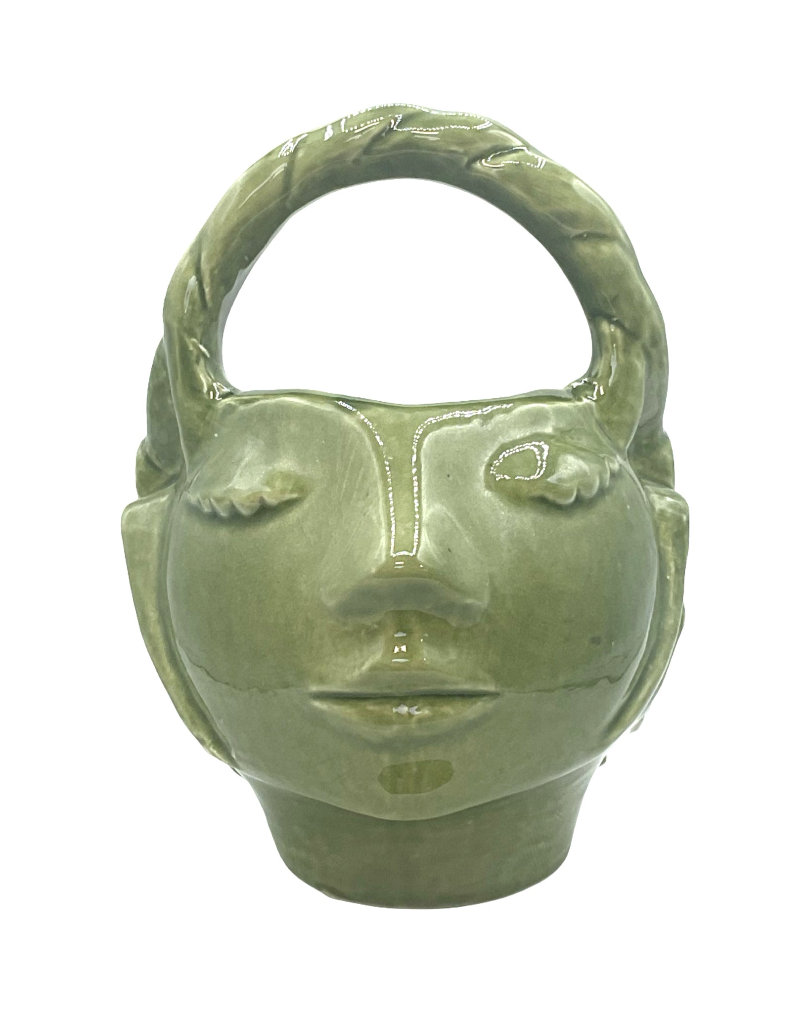 Planter with Handle ceramic green Woman's Face