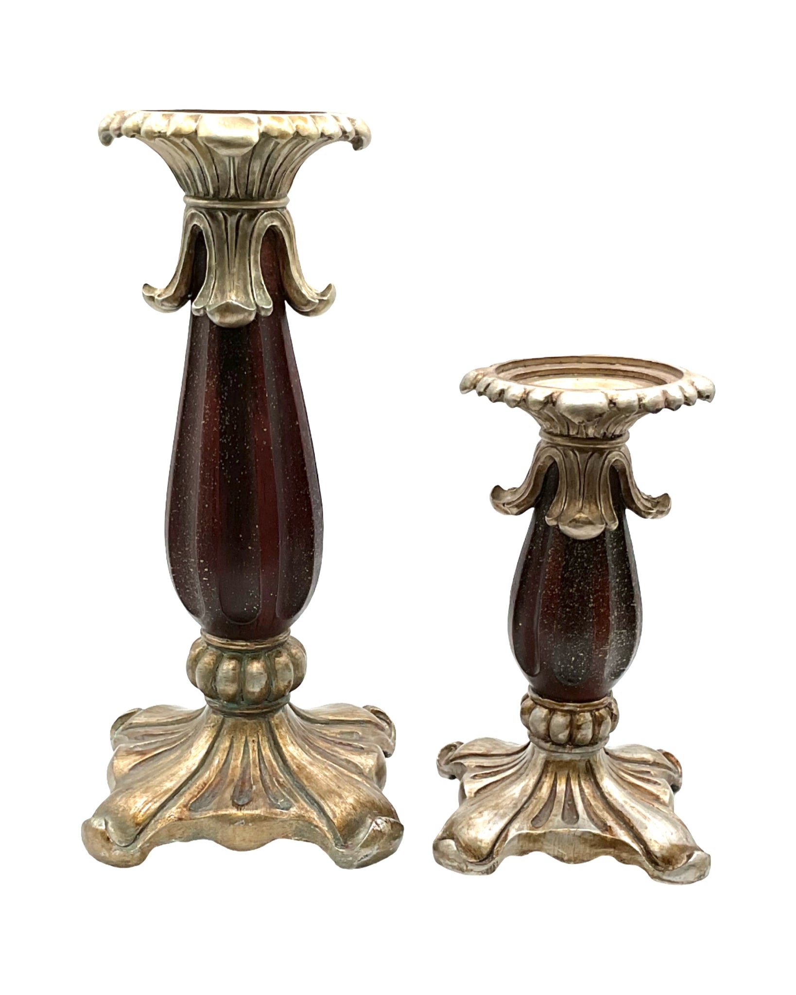 Set of 2 Candle Sticks brown & antique gold