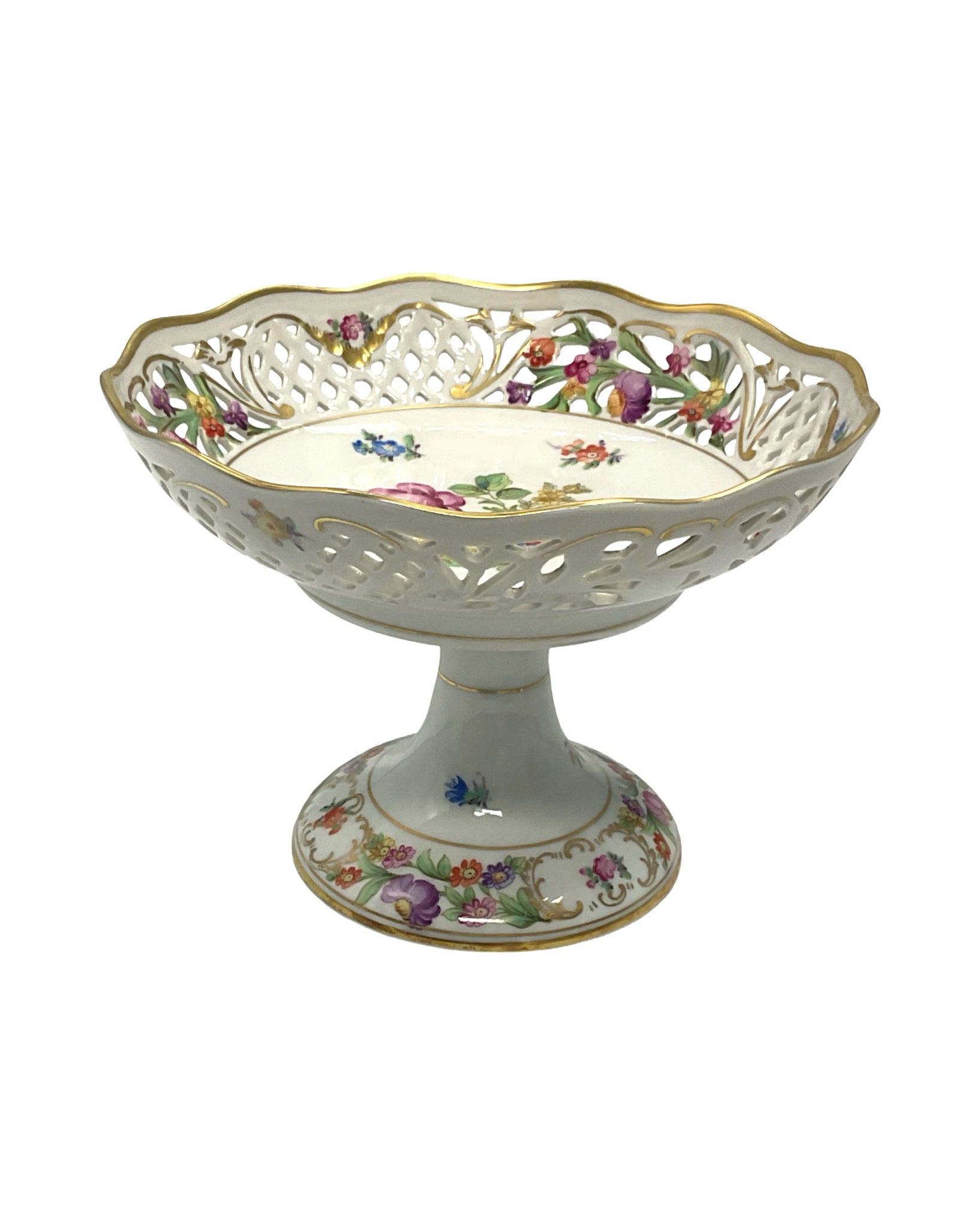 Vintage Compote Bowl Schumann Arzberg Germany Dresden Line white porcelain pearced with floral & gold detailing