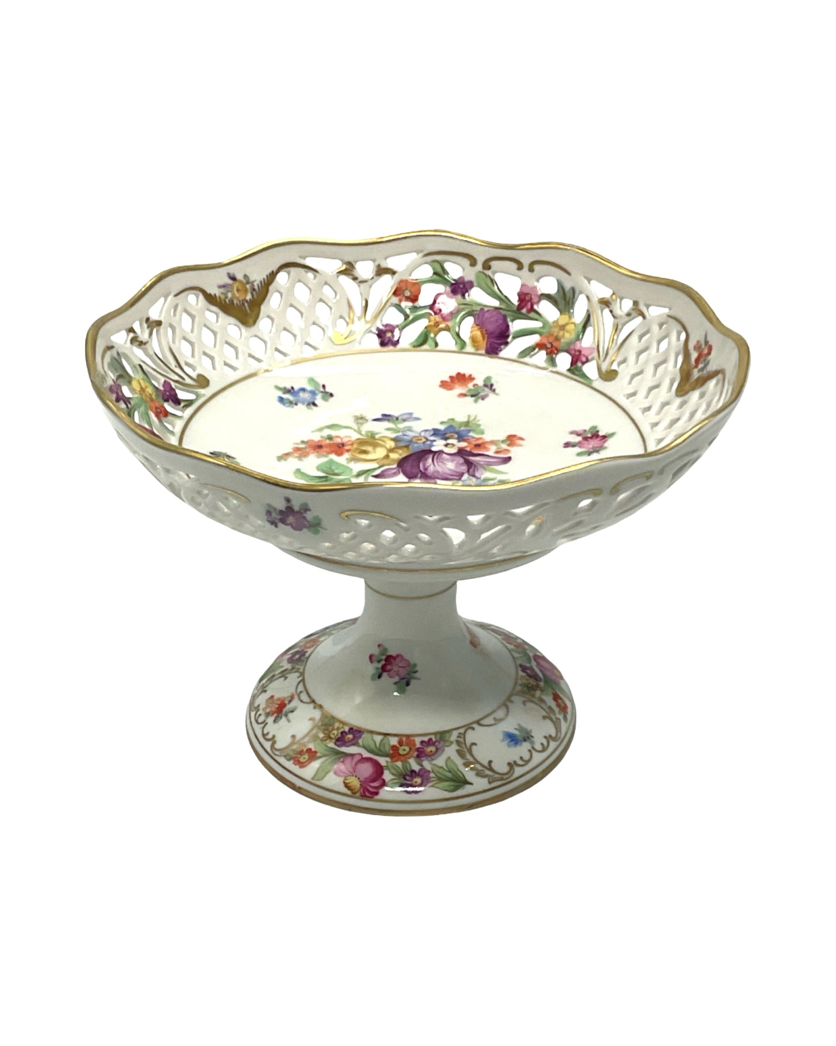 Vintage Compote Bowl Schumann Arzberg Germany Dresden Line white porcelain pearced with floral & gold detailing