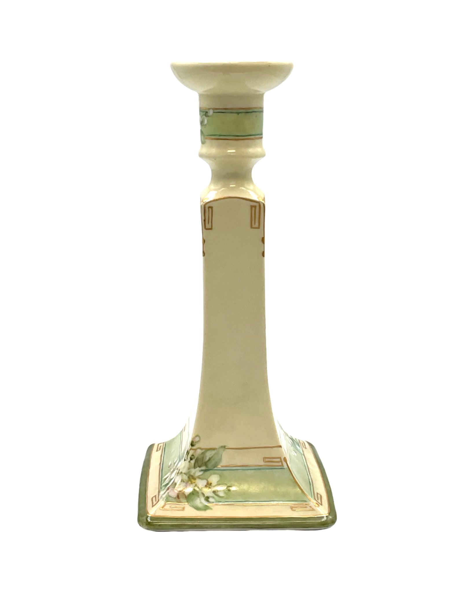 Candle Stick Vienna Austria porcelain hand painted ivory green gold with floral motif