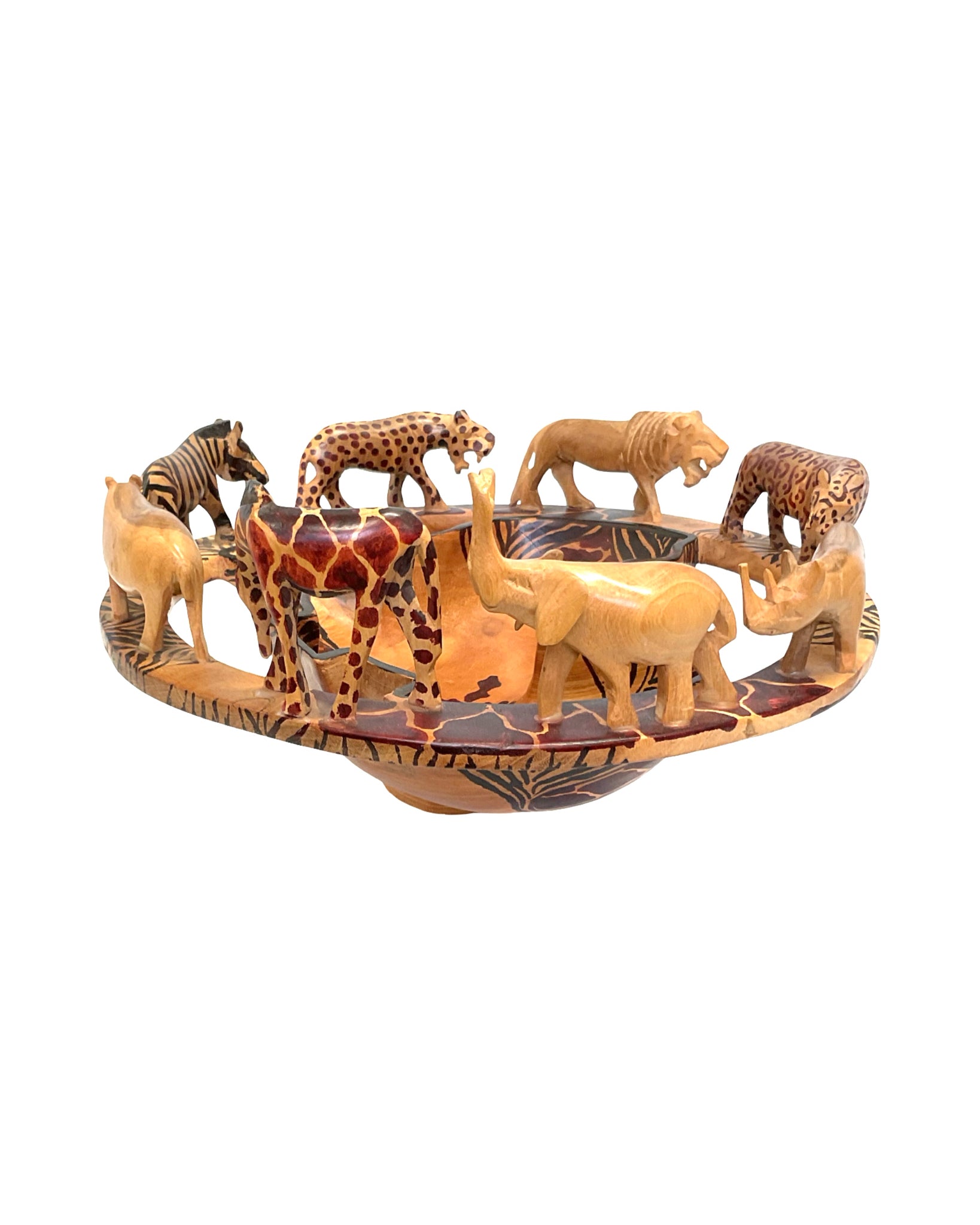 Bowl Center Piece wooden hand carved African Animal Motif