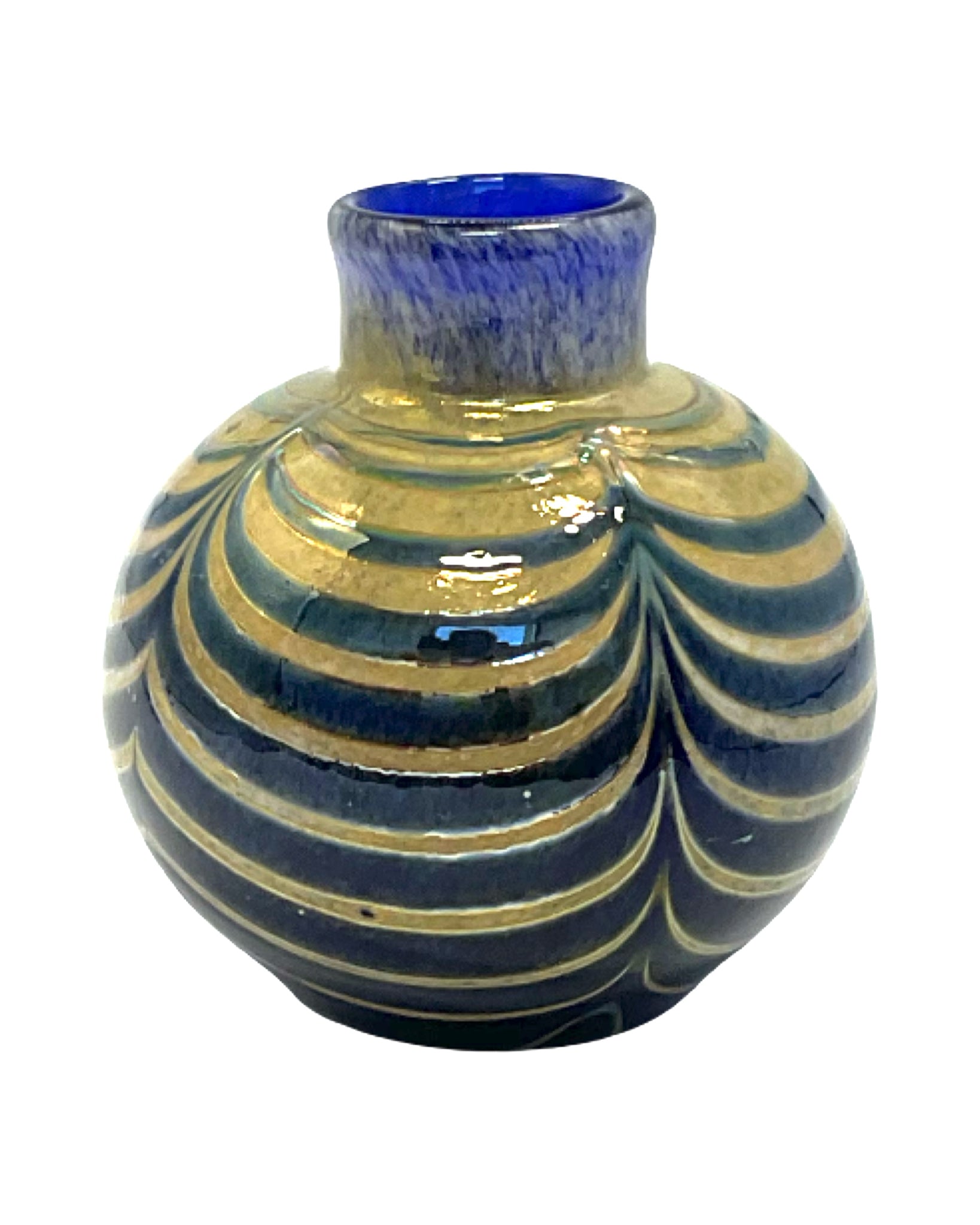 Vase art glass cobalt blue gold balloon curtain detailing