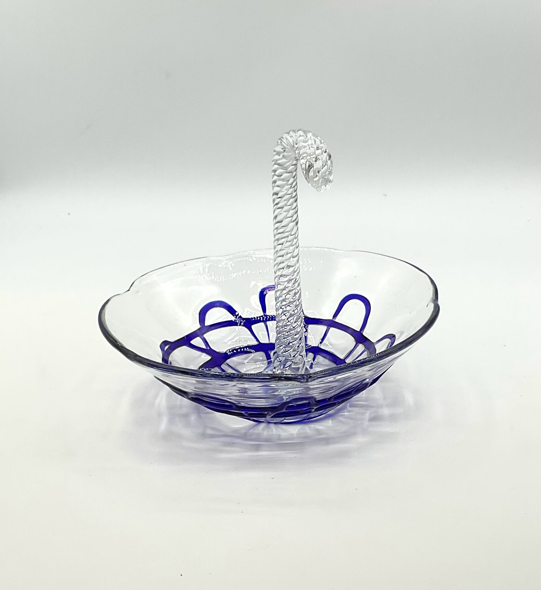 Bon Bon/Nut Dish art glass upside down umbrella clear & cobalt blue