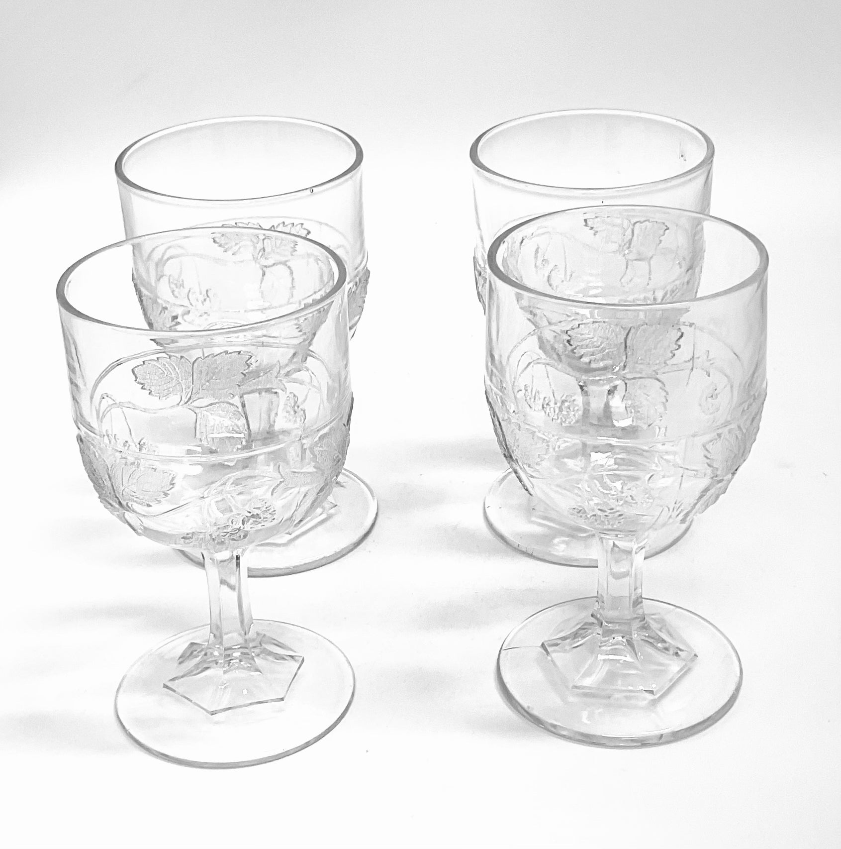 Set of 8 Vintage Stemmed Sherbet Fruit Cups pressed glass with cherry motif