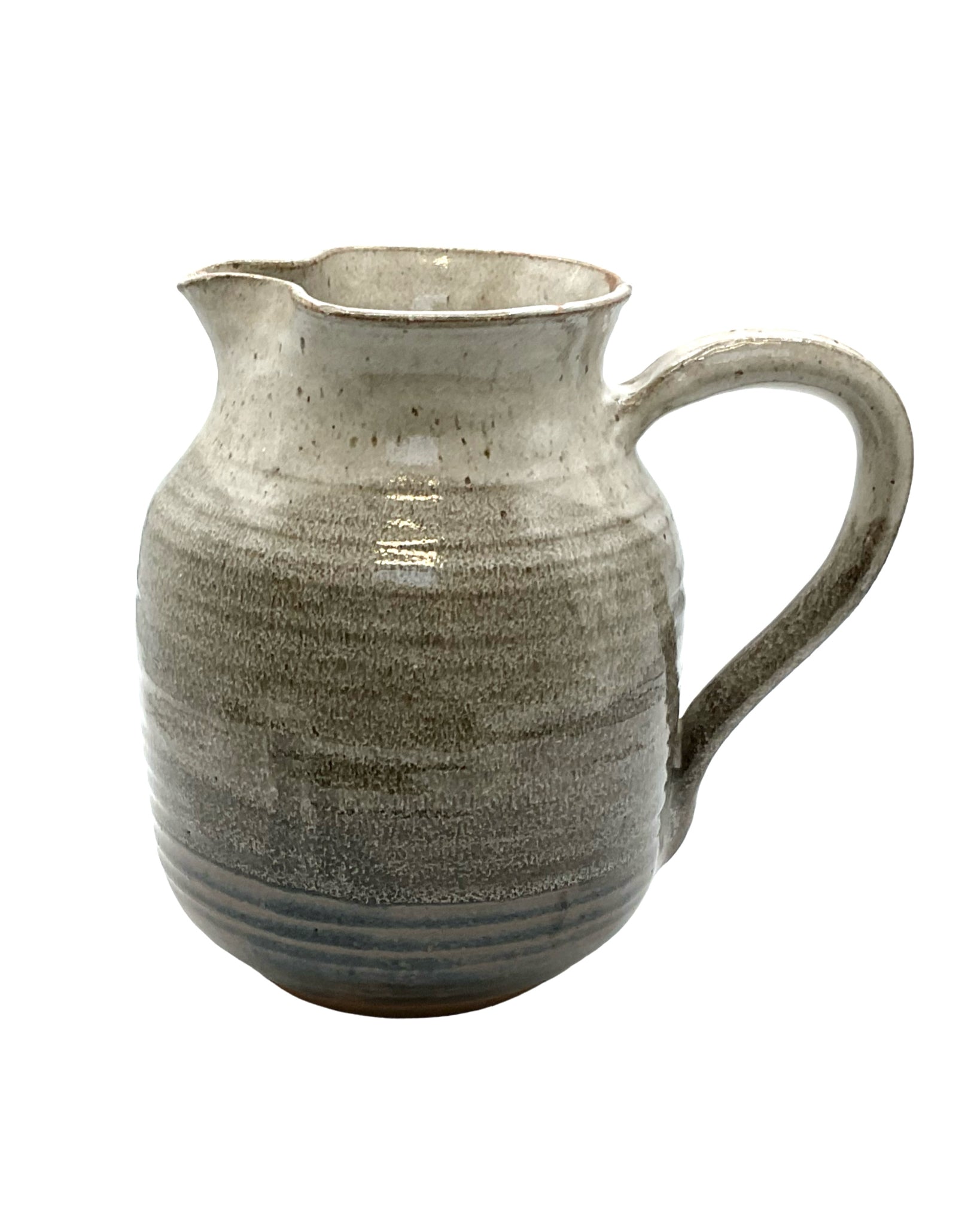 Water Pitcher with Handle signed pottery ribbed grey & brown