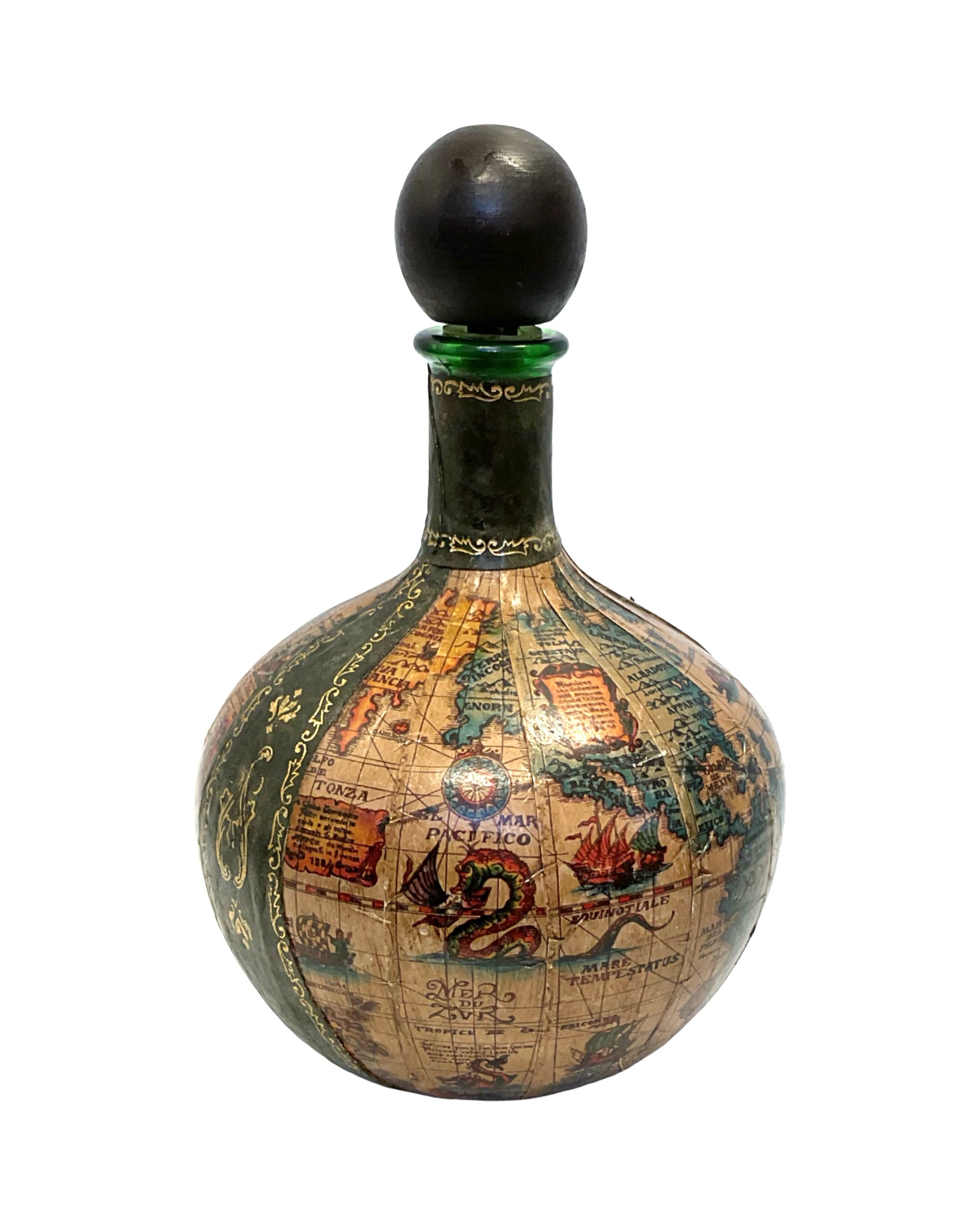 Vintage Decanter with Stopper Italy leather wrapped world map