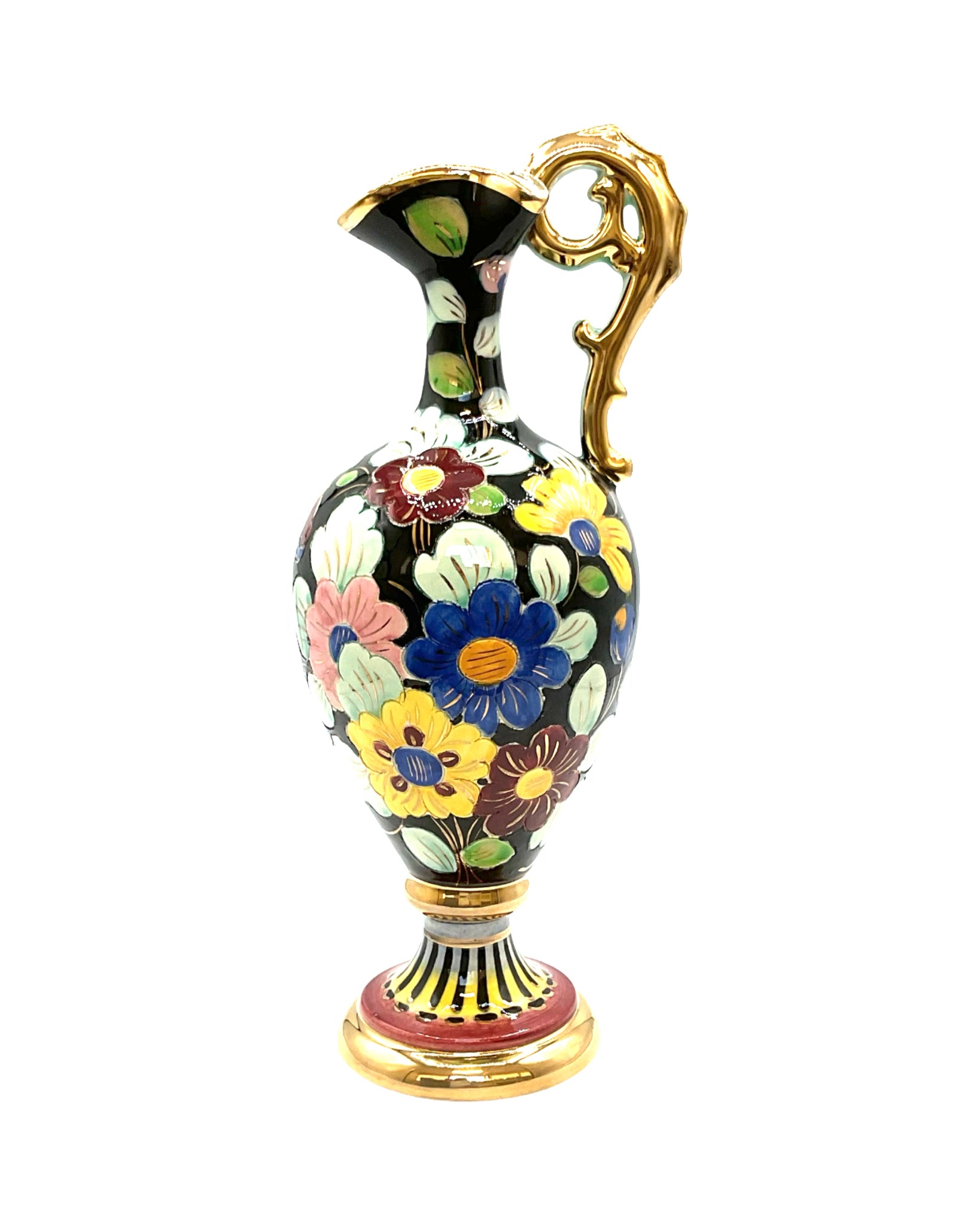 Pitcher with Handle Cerdazur Monaco floral with gold detailing
