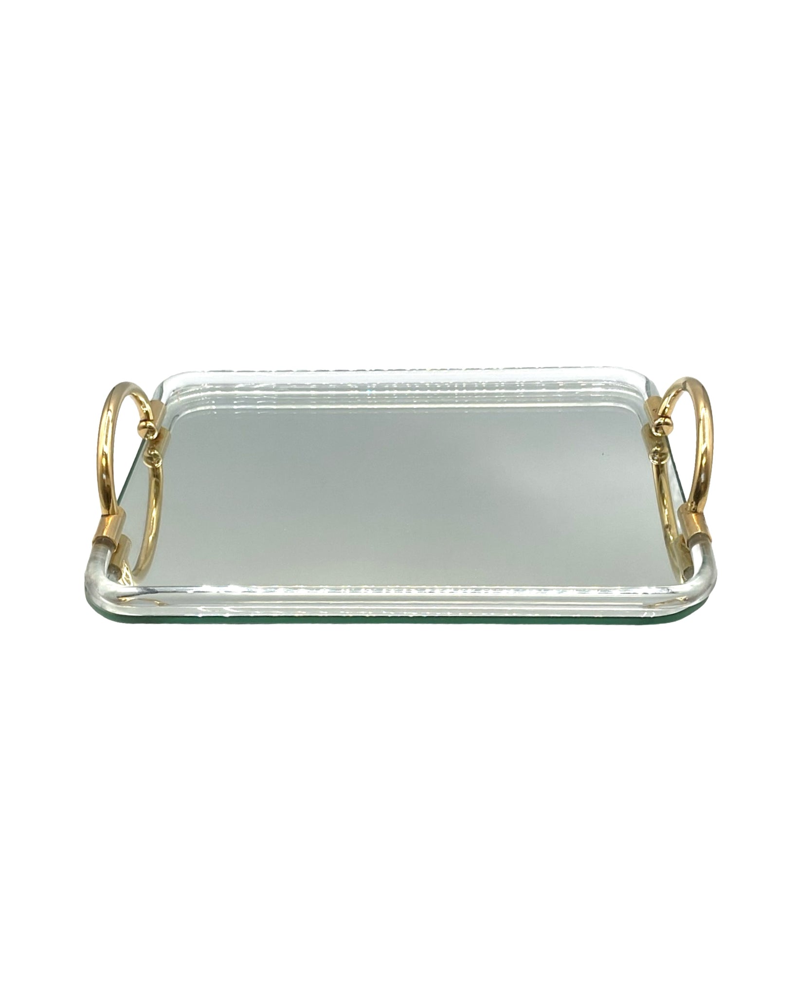 Mirrored Tray with 2 Brass Handles & Acrylic Gallery rectangle footed