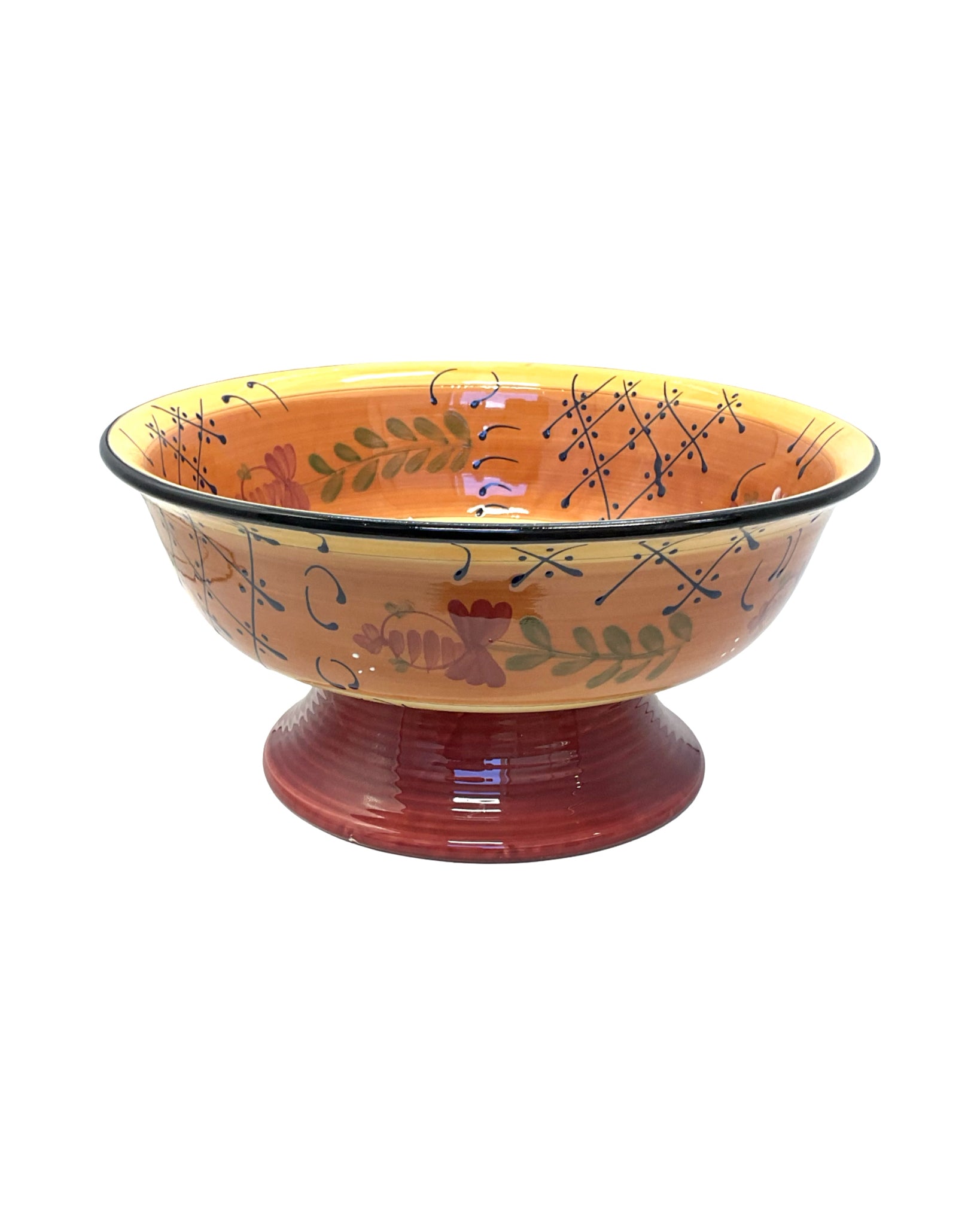 Pedestal Bowl Romancing Provence pottery taupe red & orange with hand painted detailing