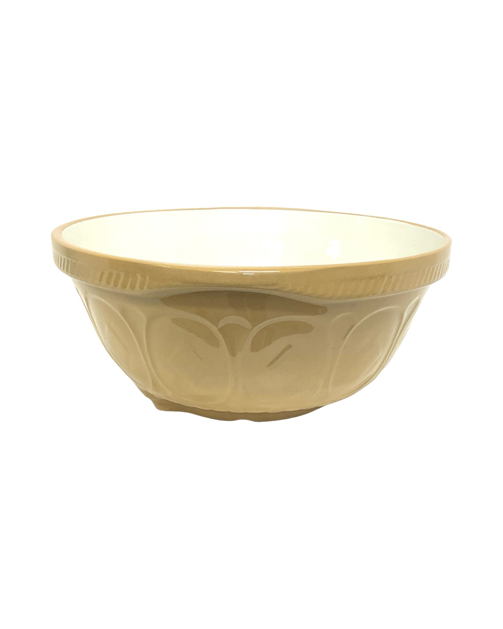 Vintage Mixing Bowl Gripstand England ceramic taupe & white
