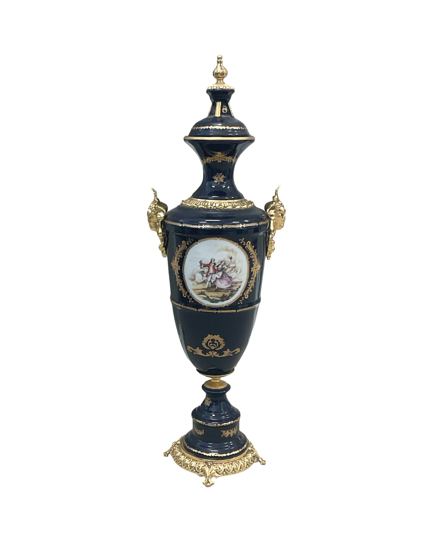 Set of 2 Large Vases with Lids porcelain cobalt blue with gold gilt detailing