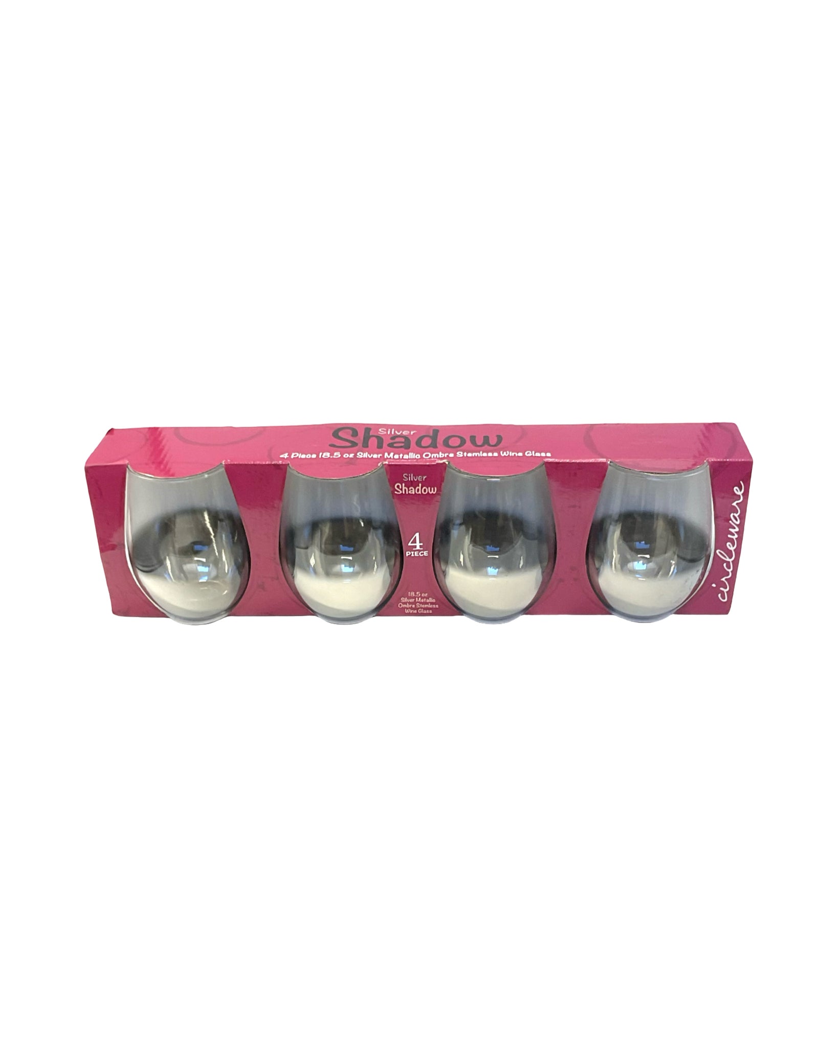 Set of 4 Stemless Wine Glasses Silver Shadow