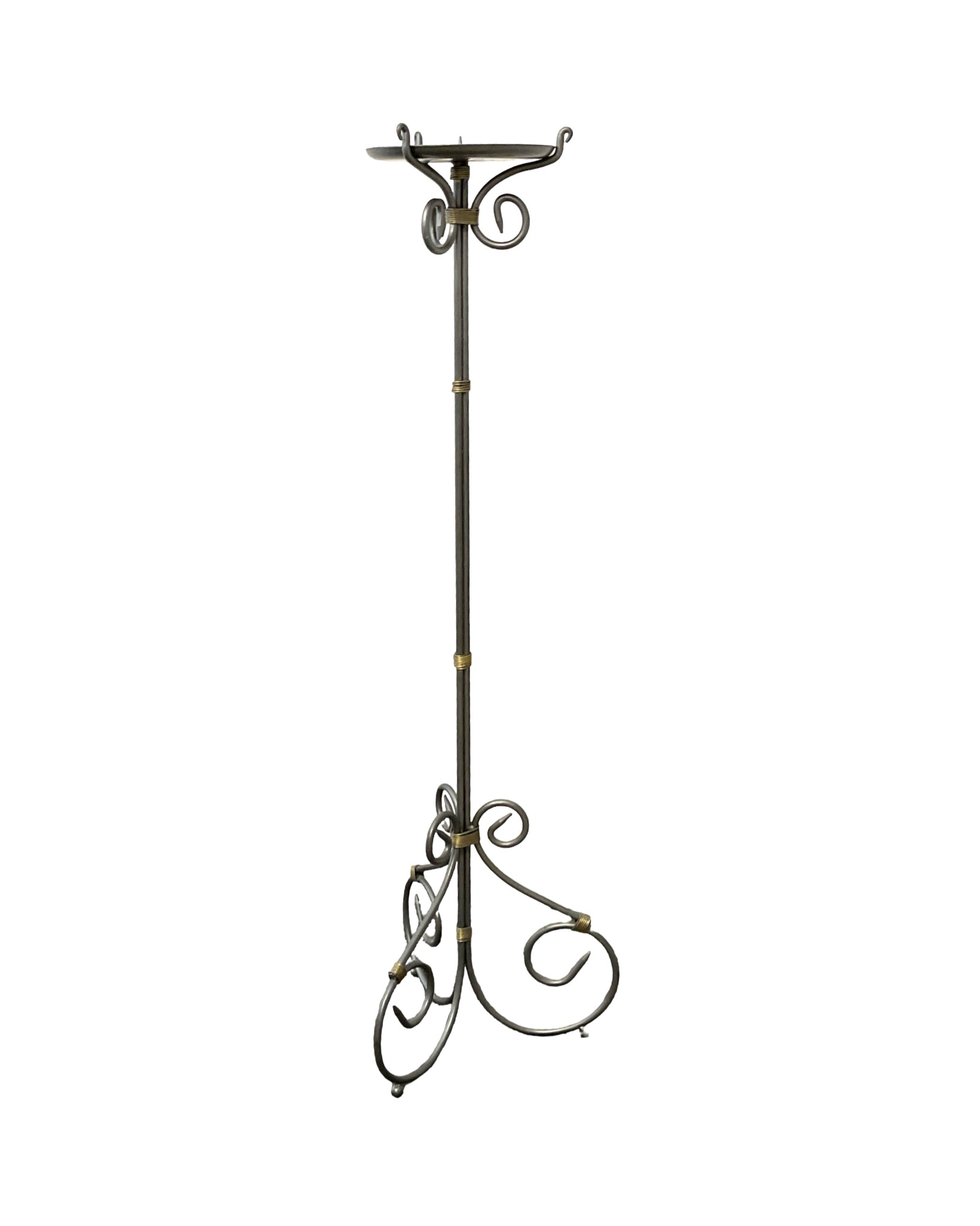 Pillar Candle Holder metal silver tone scroll detailing