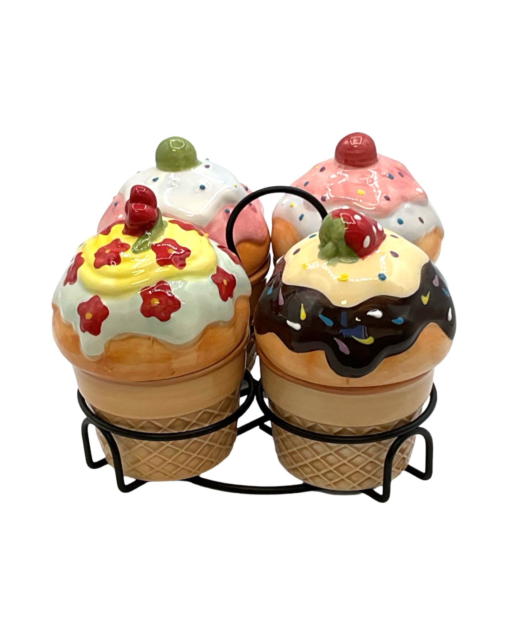 Cupcake Condiment Containers in Metal Stand ceramic multi coloured