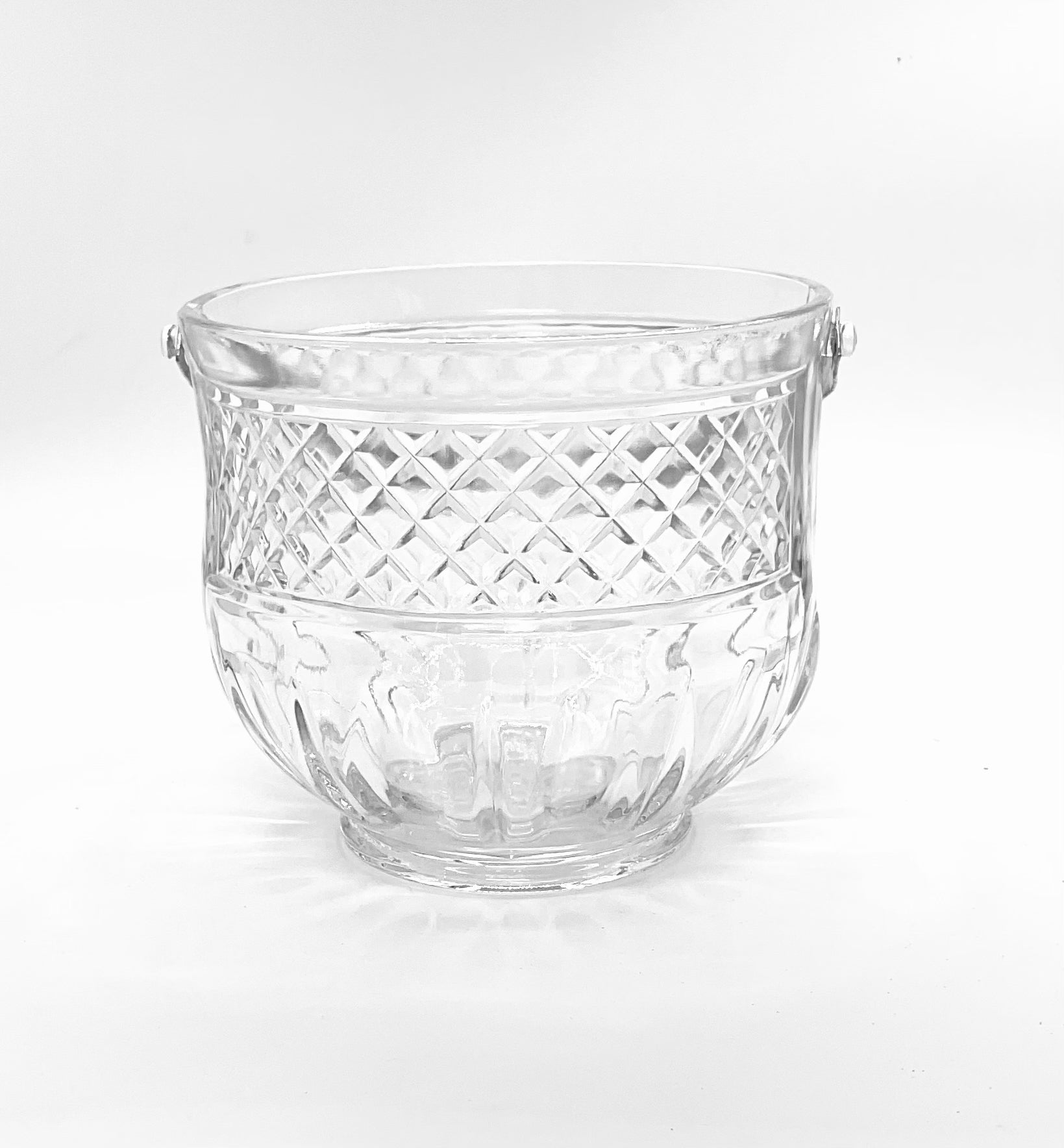 Ice Bucket with Hammered Handle pressed glass diamond etched