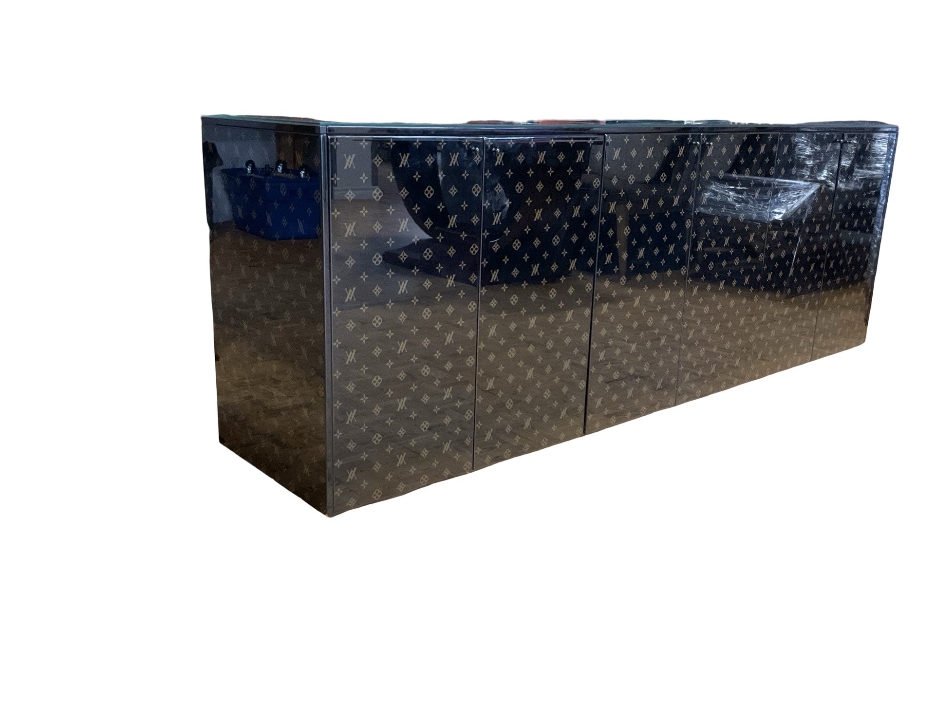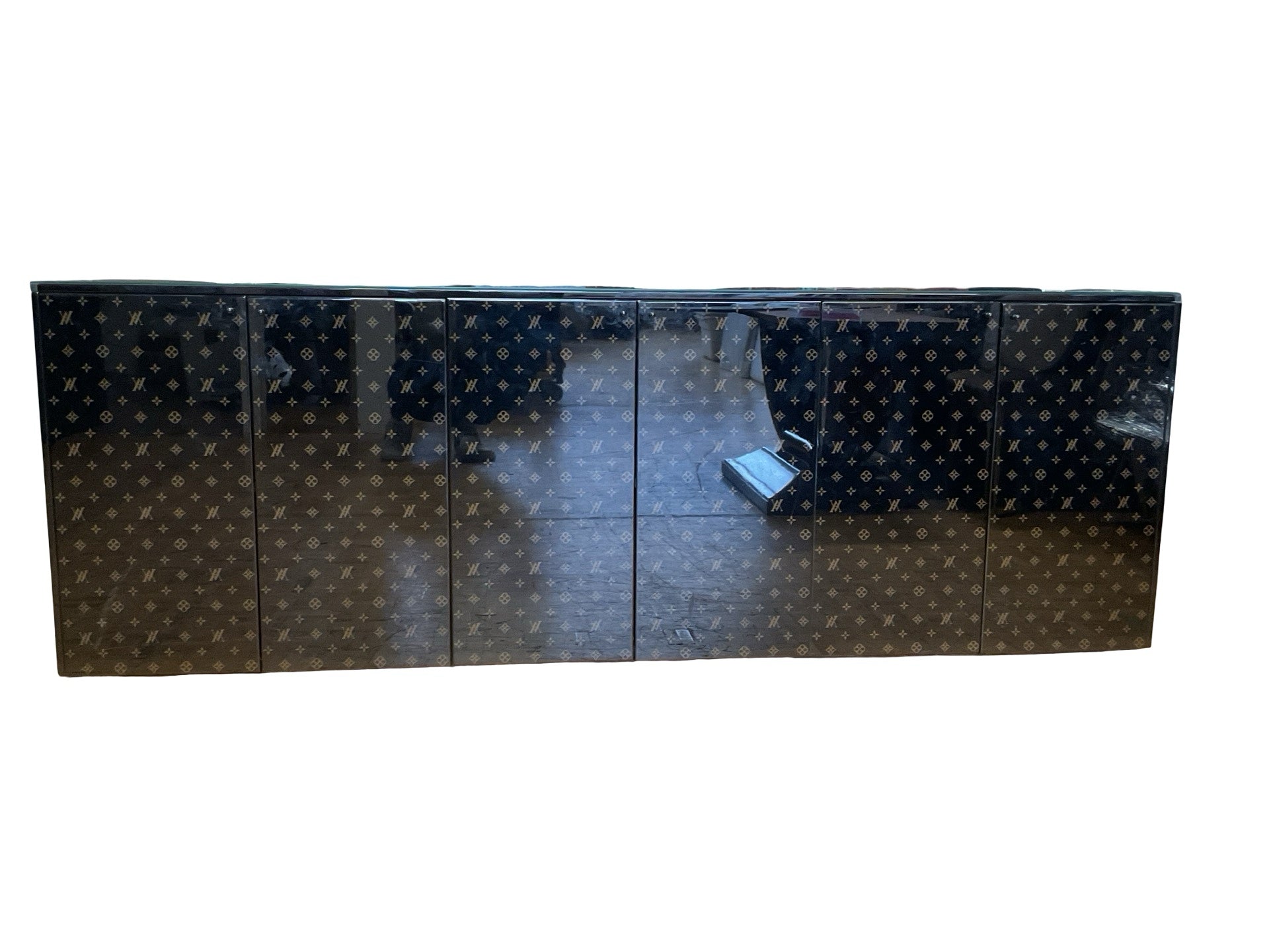 Buffet wooden black lacquer 6 doors additional glass top 92"W x 20"D x 31.5'H