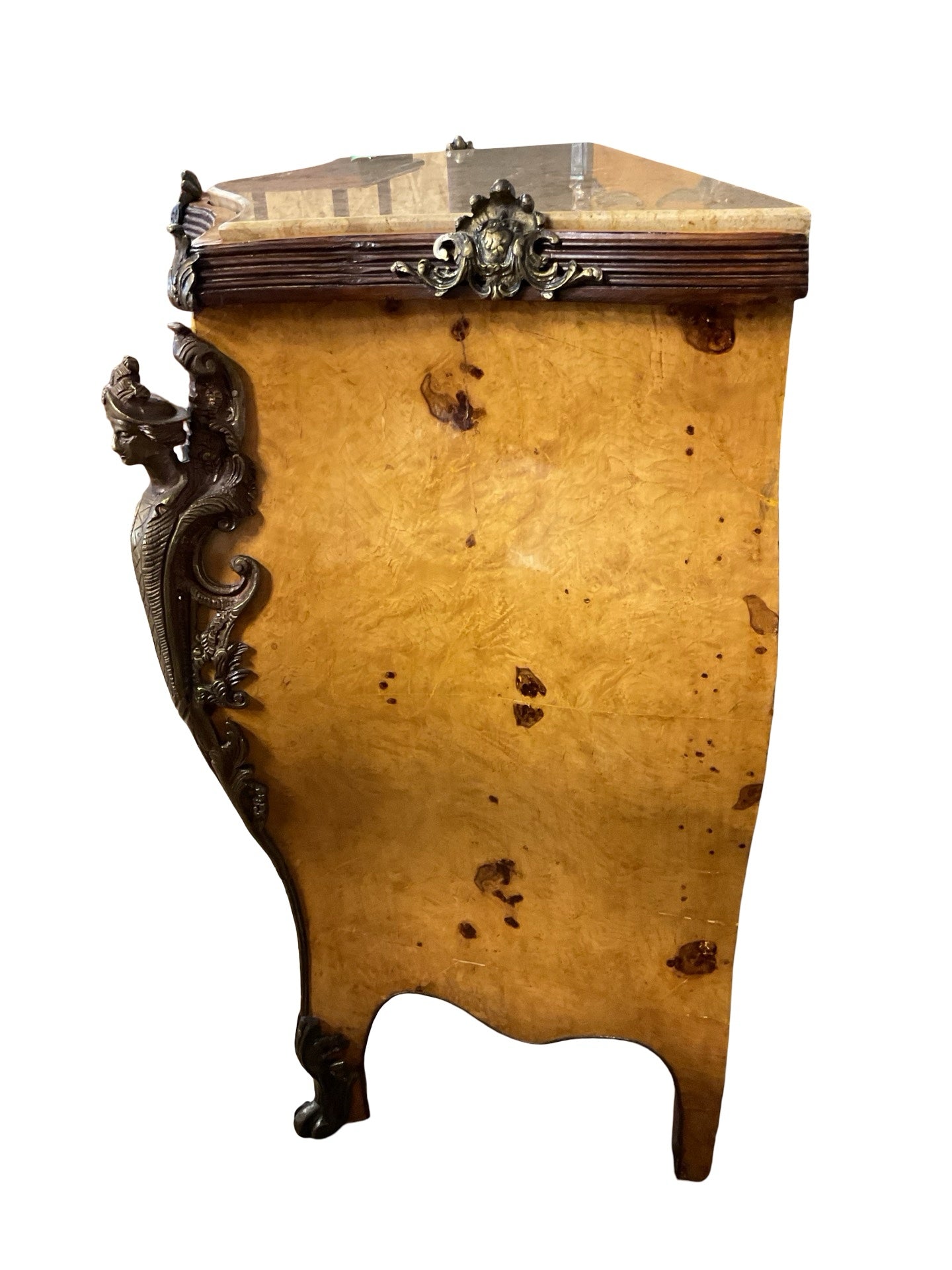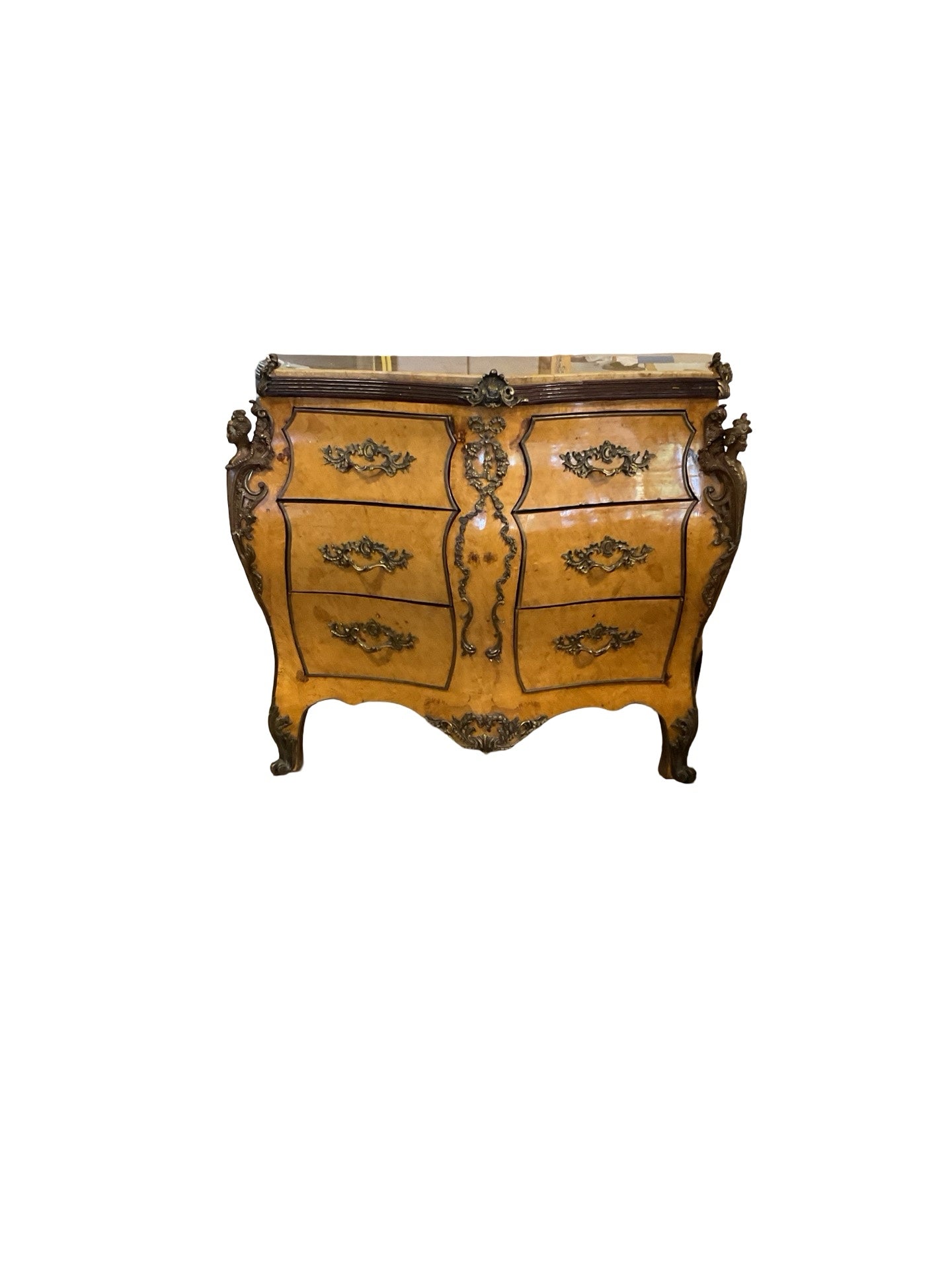 Chest Rococo Style wooden 6 drawers brass mounts with ormolu detailing and taupe marble top 50"W x 22.5"D x 40"H