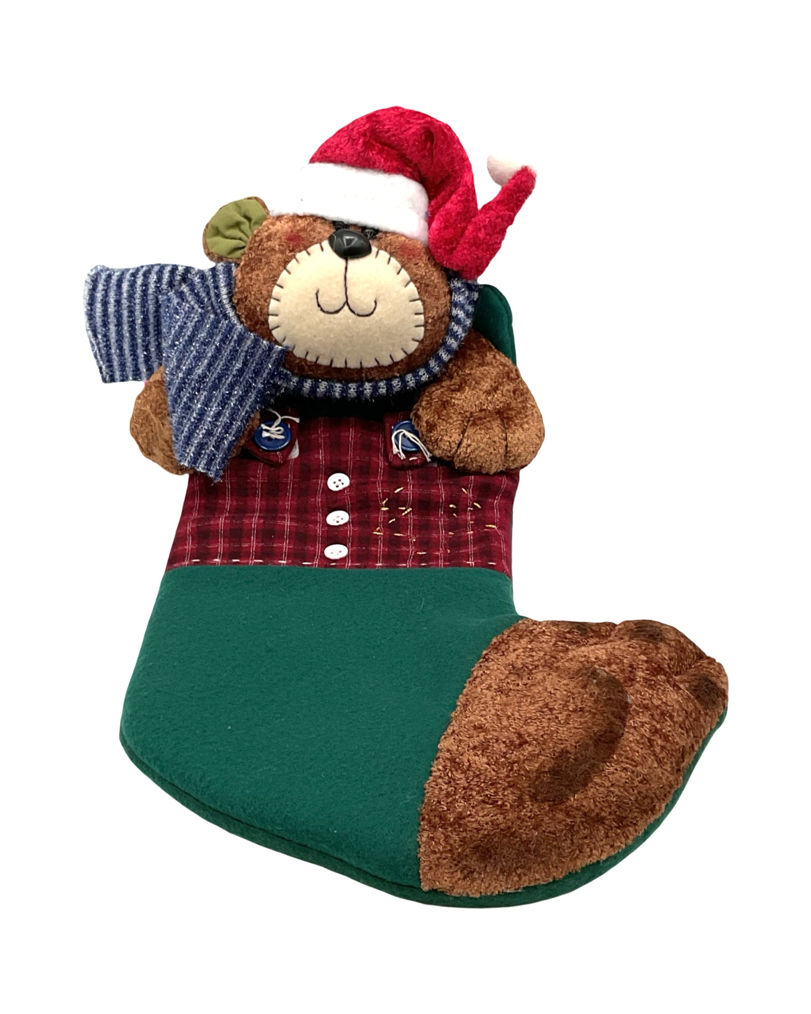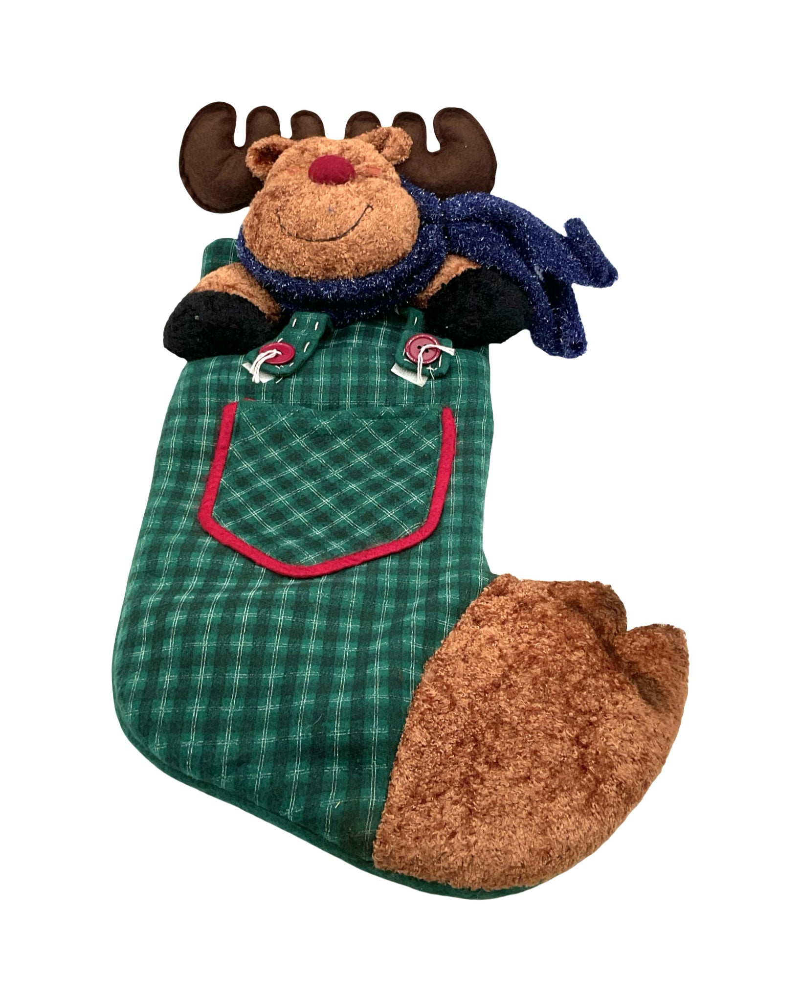 Christmas Set of 2 Stockings Animals with Scarf & Plaid Detailing