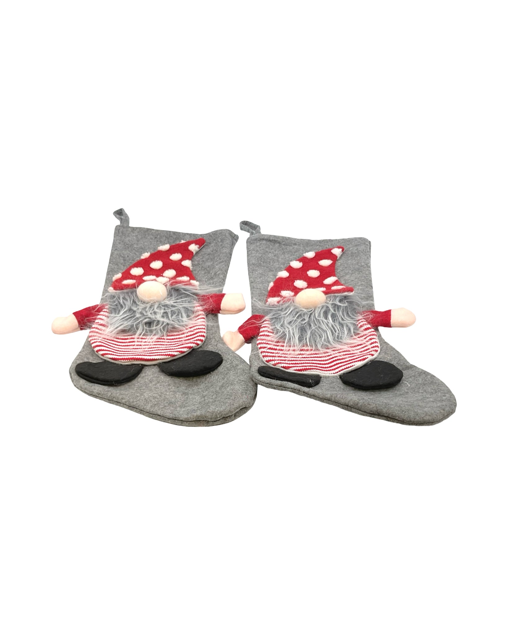 Christmas Set of 2 Stocking grey with bearded Gnome