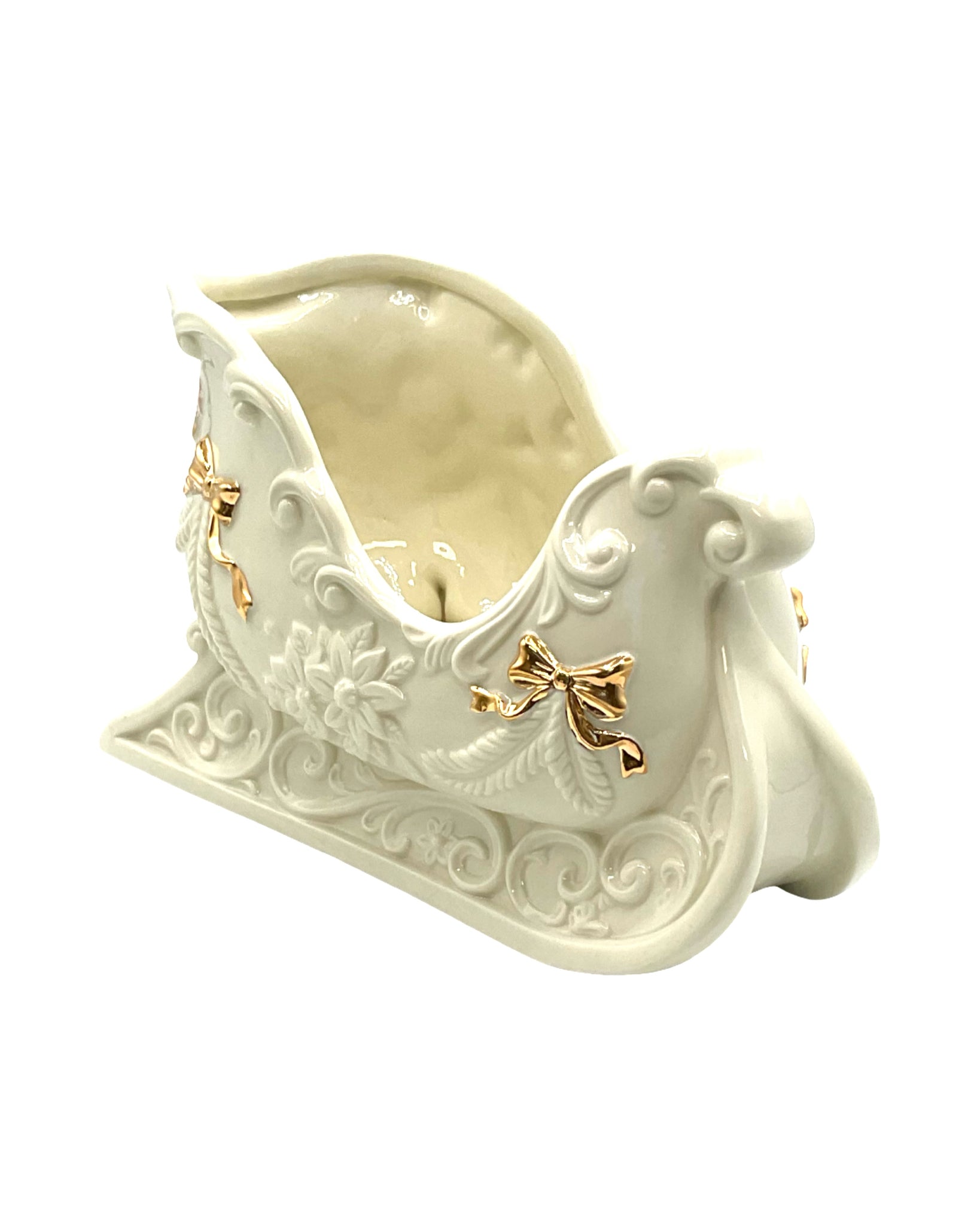 Christmas Centerpiece Sleigh ceramic white with gold detailing